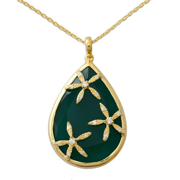 Green Onyx and Cubic Zirconia Gold Vermeil Necklace 'Green Floral Kiss'