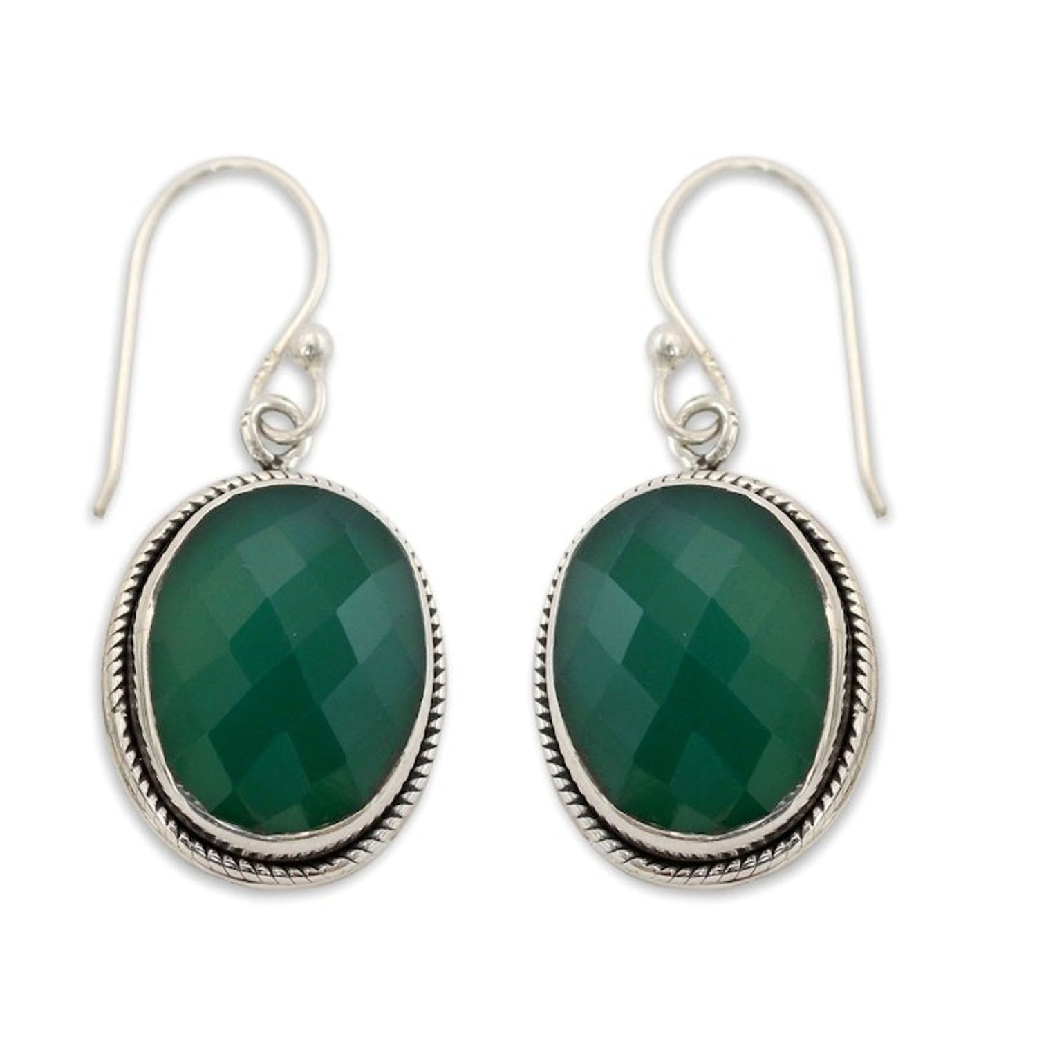 These Green Onyx Earrings in Sterling Silver Handmade in India 'Luscious Green' by Shanker are earrings in a luscious shade of green. Heat-treated and faceted onyx rests on sterling silver bezels. For him, each piece represents perseverance, tradition, and passion for his craft.