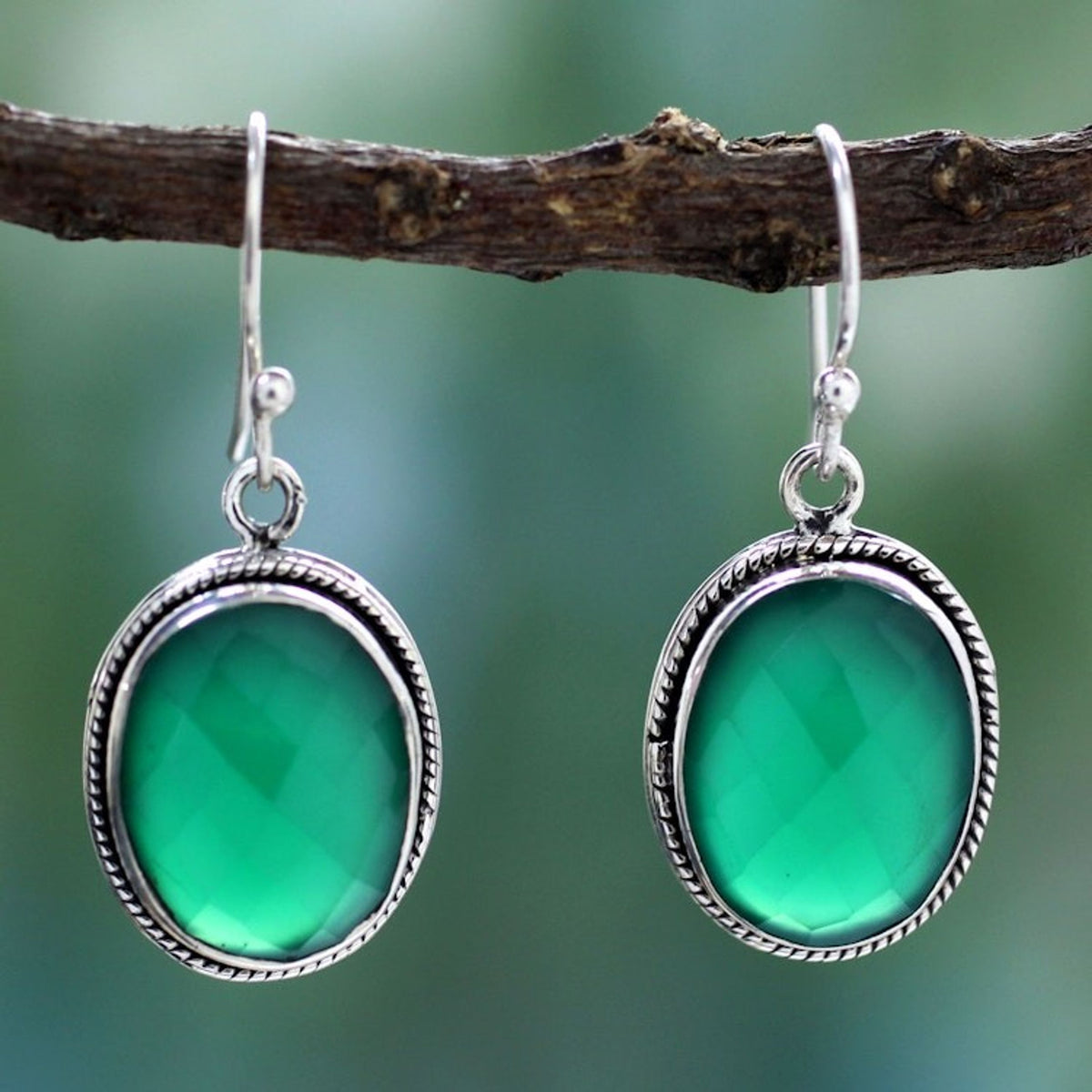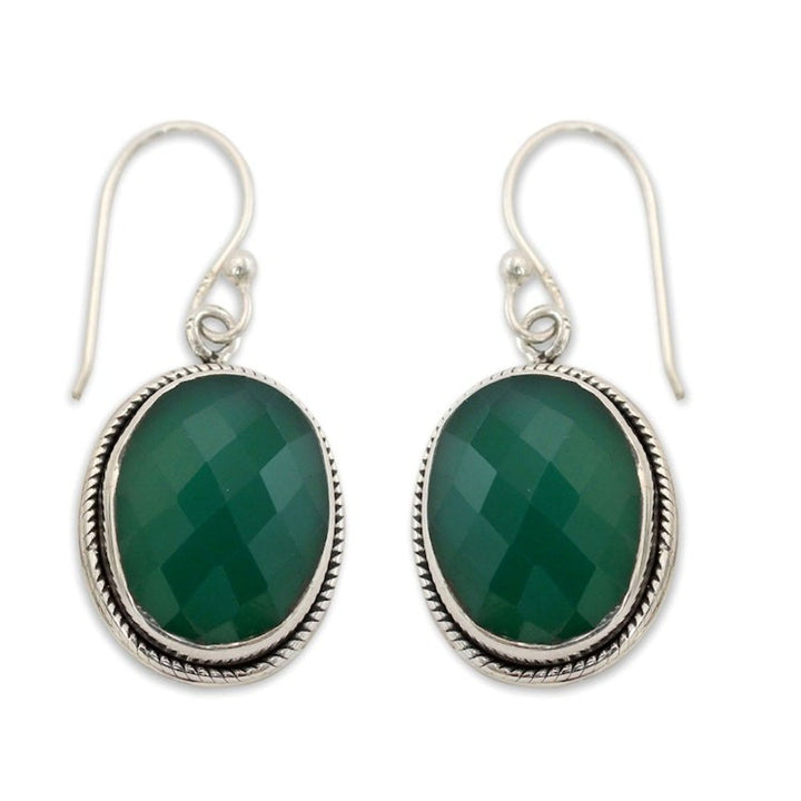 Green Onyx Earrings in Sterling Silver Handmade in India 'Luscious Green'