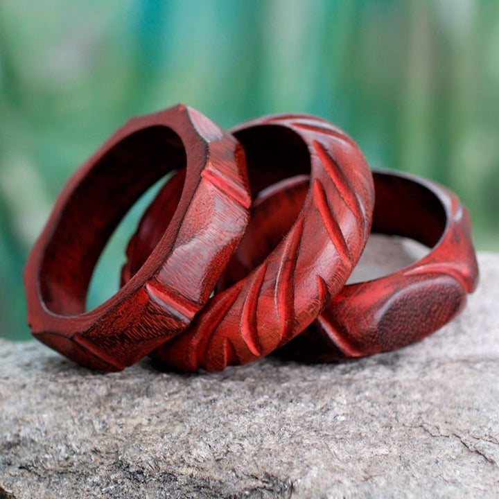 Hand Carved Mango Wood Bangle Bracelets India Set of 3 'Indian Romance'