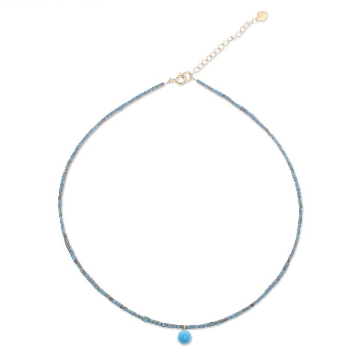 Hand Crafted Gold-Plated Magnesite Pendant Necklace 'Before Dawn in Turquoise'