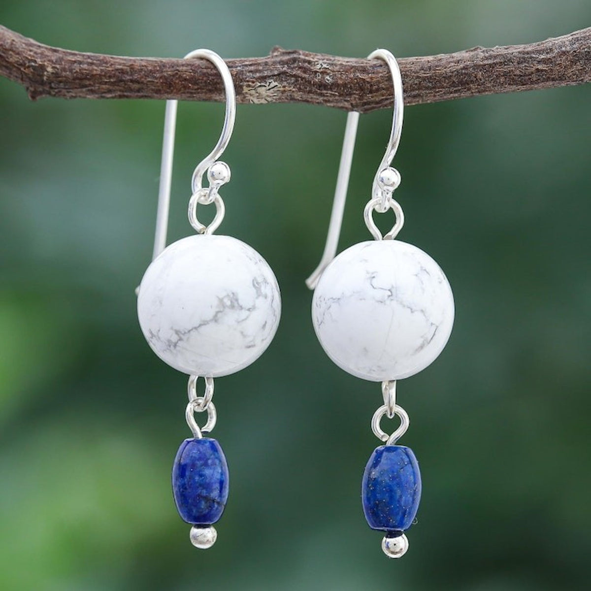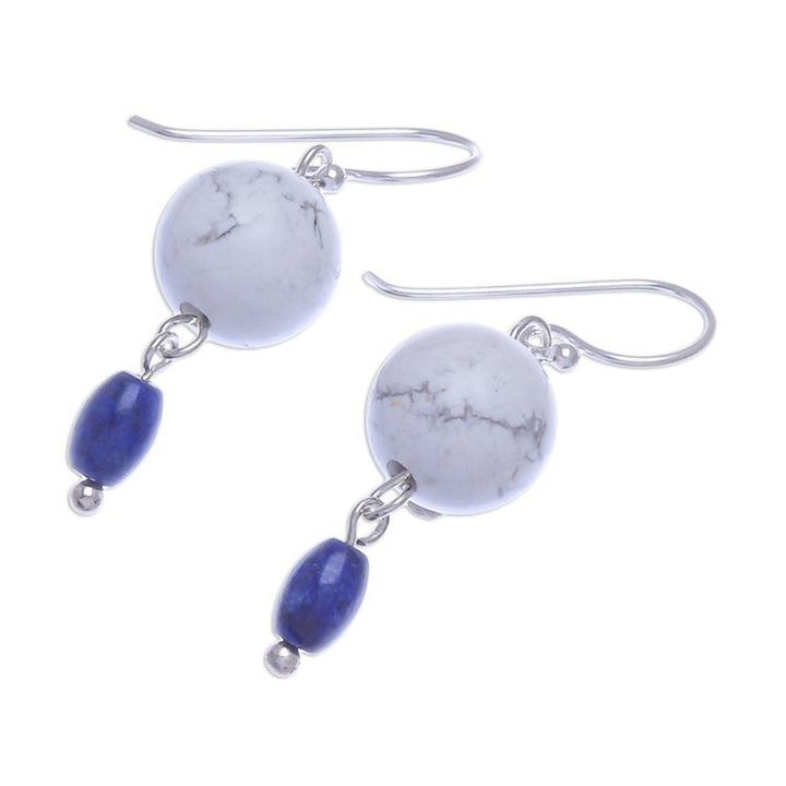 Hand Crafted Howlite and Lapis Lazuli Dangle Earrings 'Winter Traveler'