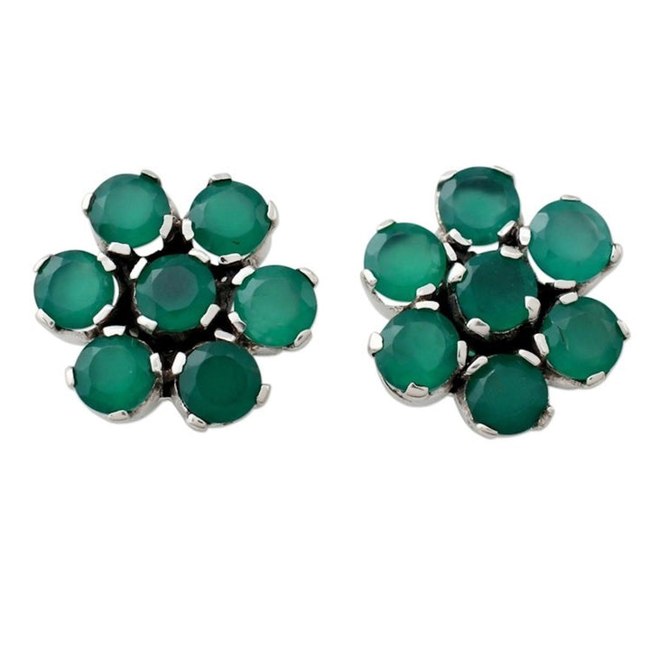 Hand Crafted Onyx and Sterling Silver Floral Button Earrings 'Green Blossom'