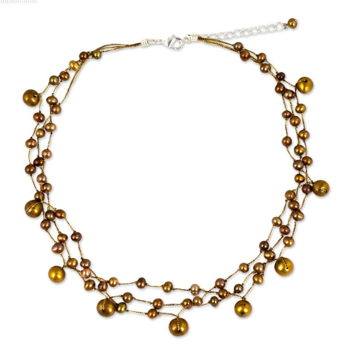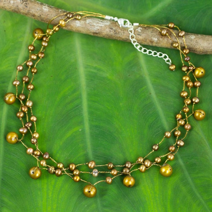 Hand Crafted Pearl Choker Necklace 'Cinnamon Glow'