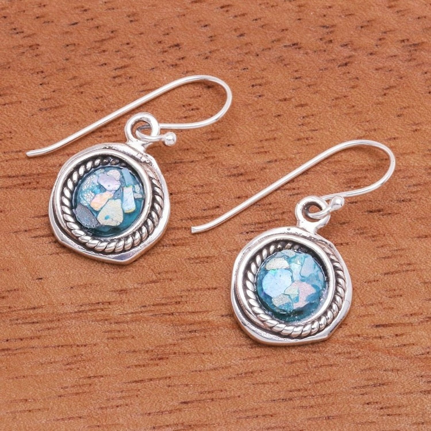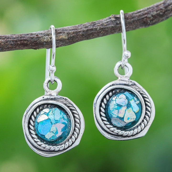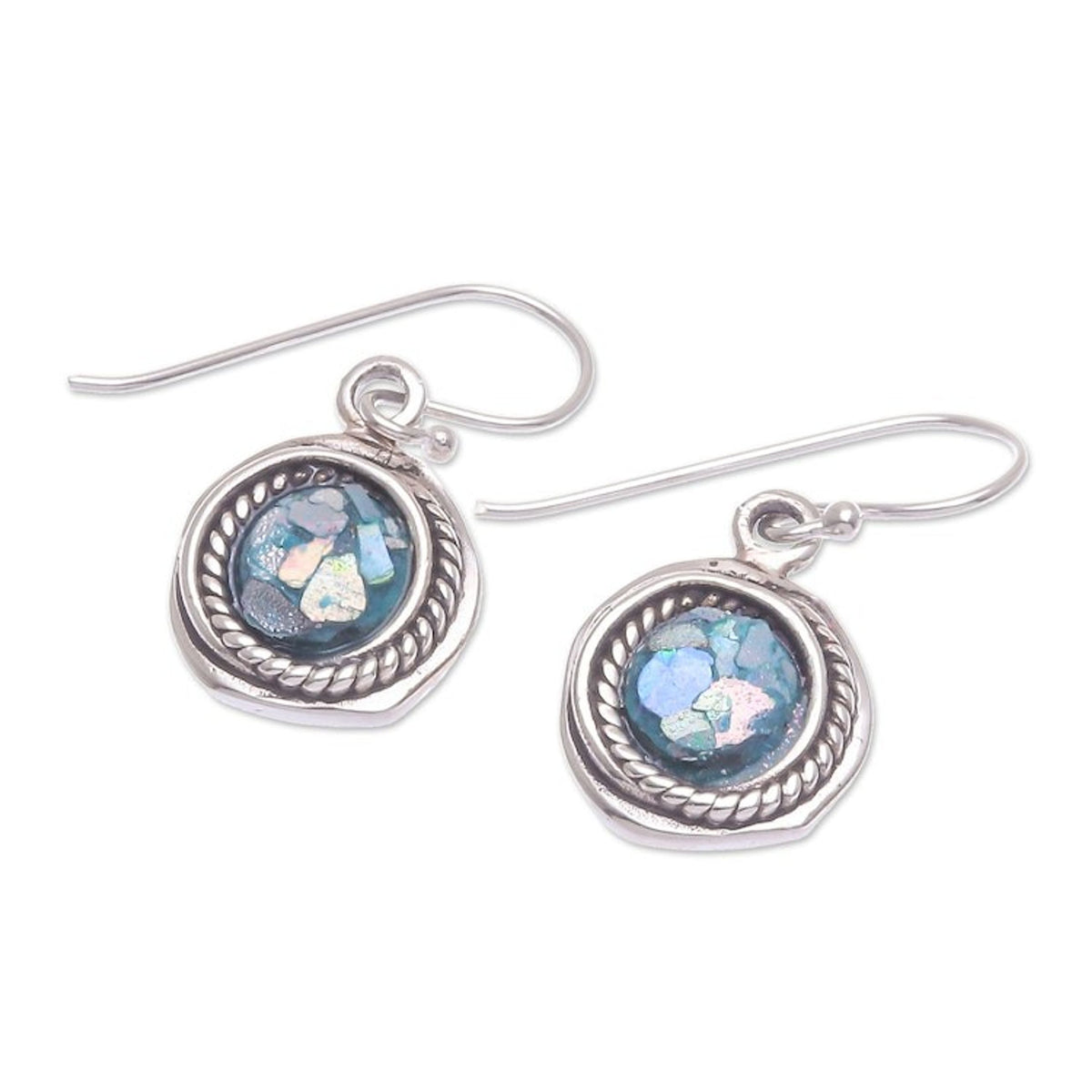 Hand Crafted Roman Glass Dangle Earrings 'Glacier Bay'