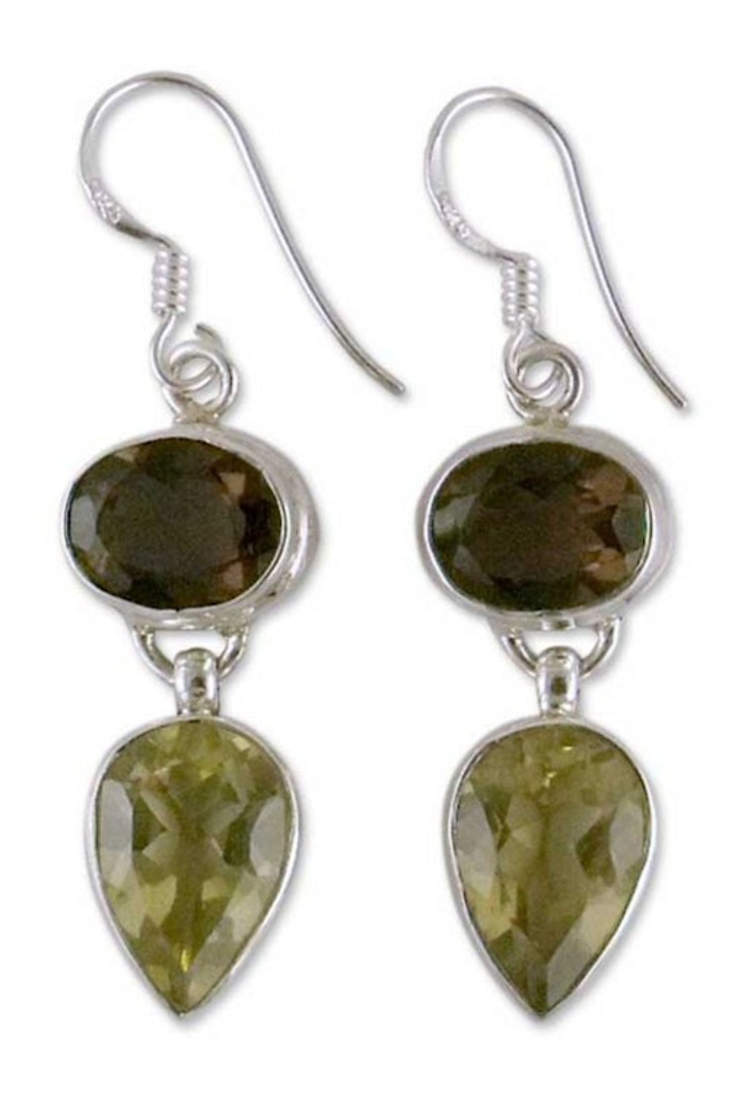Handcrafted in sterling silver, smoky quartz, and lemon quartz with a high-polish finish, these hook earrings weigh 0.28 oz. They measure 1.8 inches L x 0.4 inches W x 0.2 inches D.