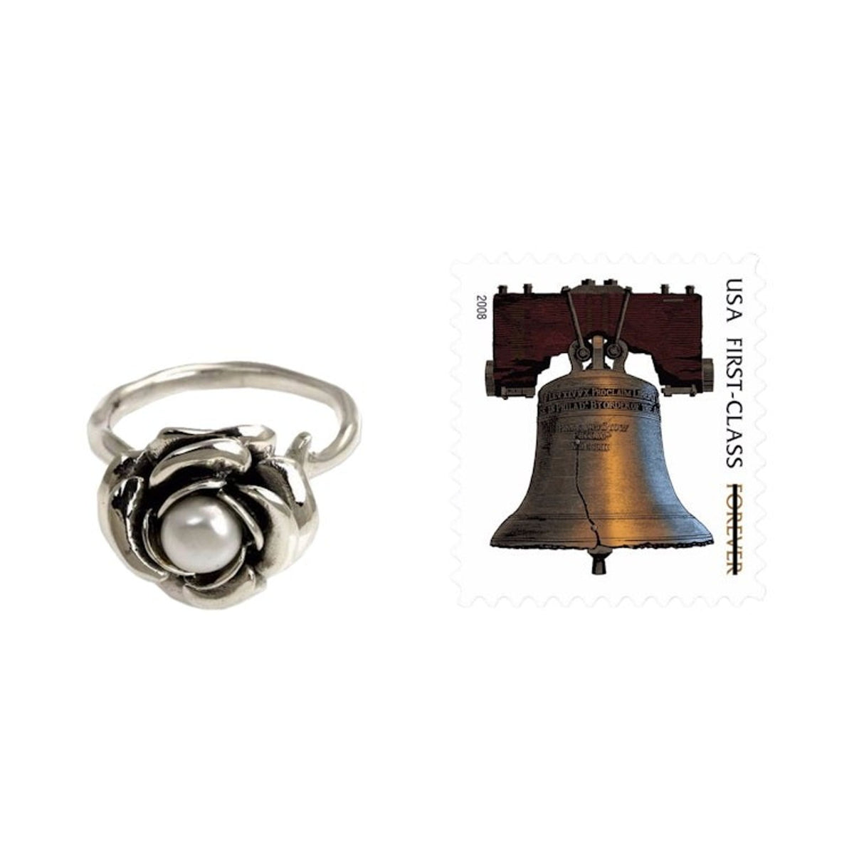 Handcrafted in sterling silver and freshwater pearl with a combination finish, this ring weighs 0.28 oz. The crown/bezel is 0.4 inches H x 0.6 inches in diameter, and the band width is 2 mm W.
