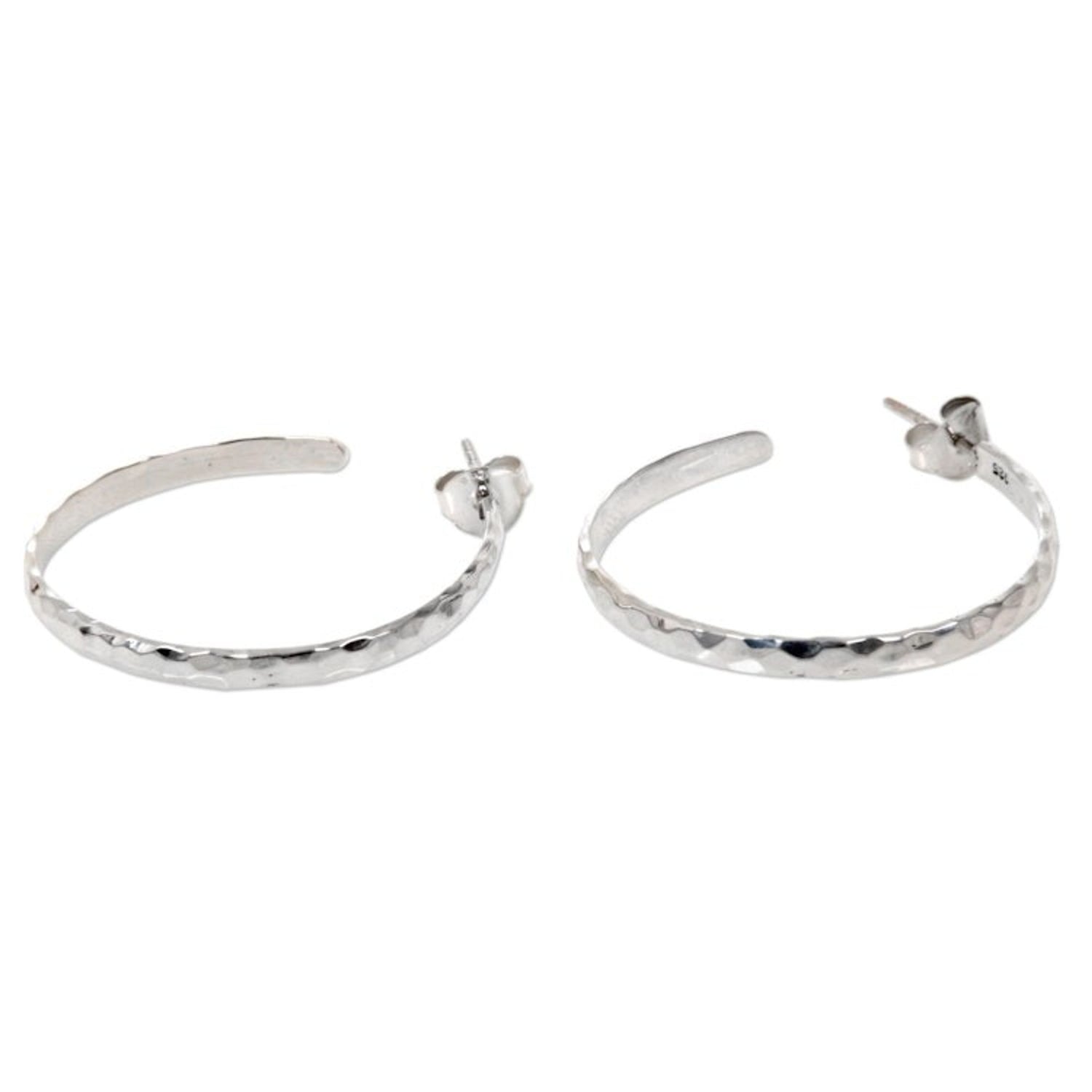 Hand Crafted Sterling Silver Half Hoop Earrings from Bali 'Mosaic in Sterling'