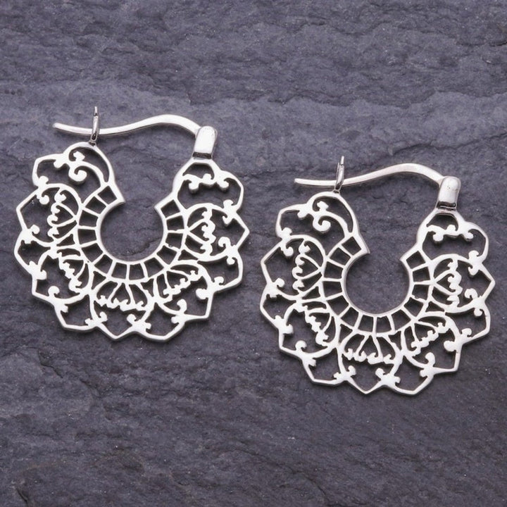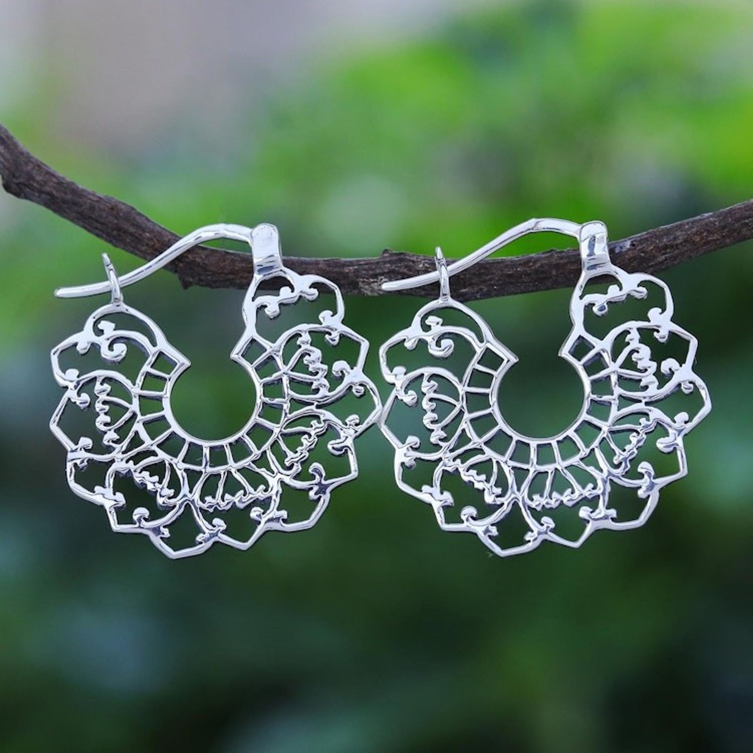These Hand Crafted Sterling Silver Hoop Earrings 'Eternal Life' by Lalana are a cool twist on classic hoop earrings, inspired by flowers. The Thai artisan hand crafts the earrings, creating curling, openwork designs that shimmer in a high-polish finish. Simple, elegant saddleback clasps finish the pair. She has created sustainable livelihoods for her collaborators.