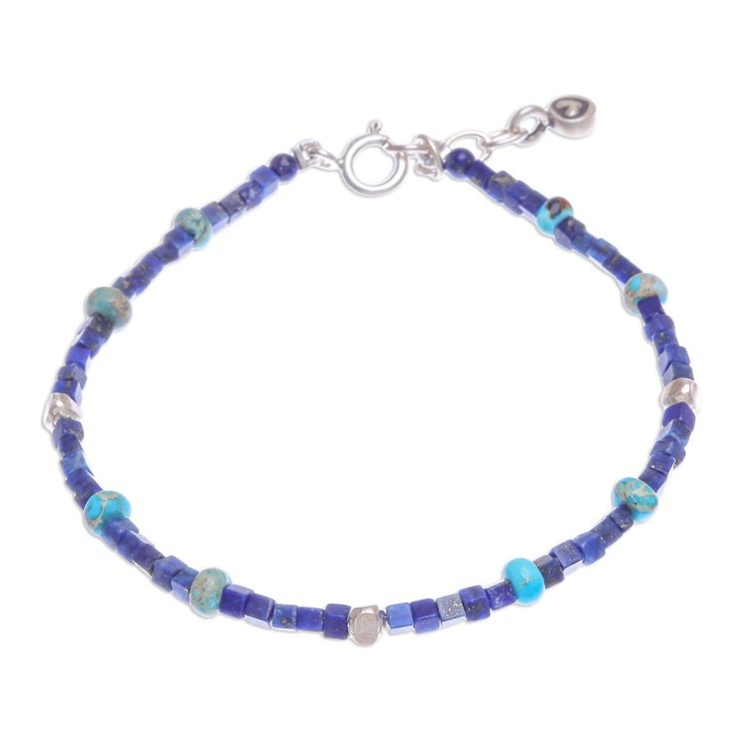 Handcrafted in lapis lazuli, jasper, 950 silver, and 925 sterling silver clasp with a combination finish, this bracelet weighs 0.16 oz. It measures 7 inches L and 0.2 inches W, with a 0.6-inch extender and a spring ring clasp. The color may vary slightly.