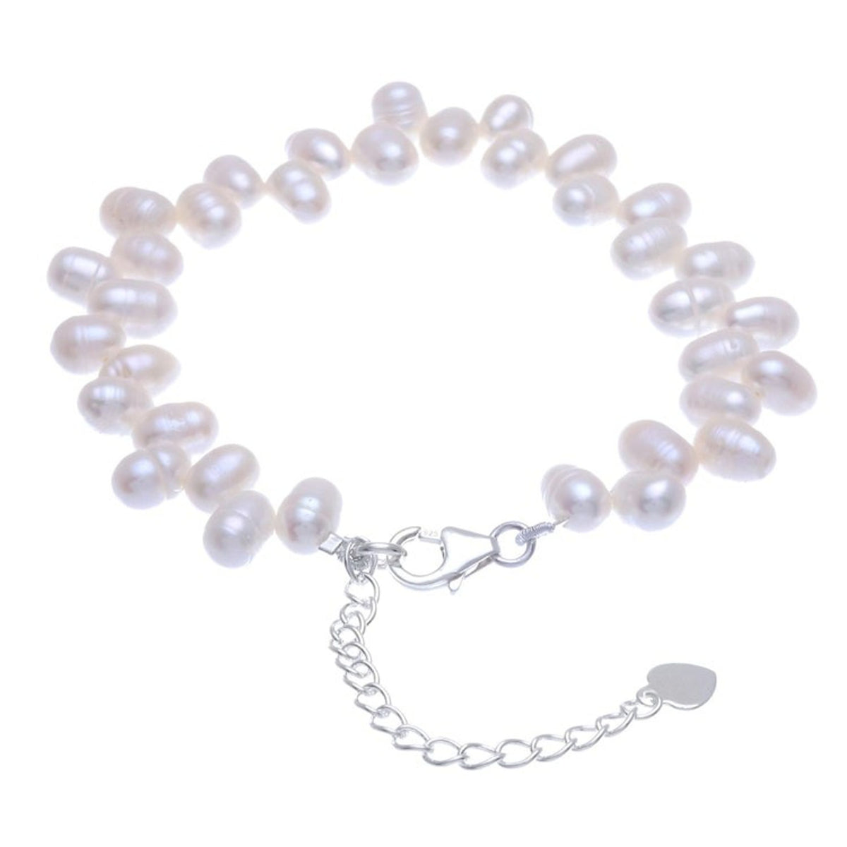 Handcrafted in cultured freshwater pearl and 925 sterling silver with a high-polish finish, this bracelet weighs 0.47 oz. It measures 7 inches L and 12 mm W, with a 2.2-inch extender and a lobster claw clasp.