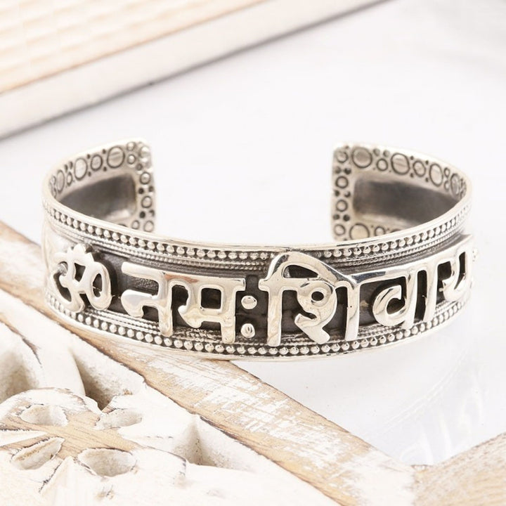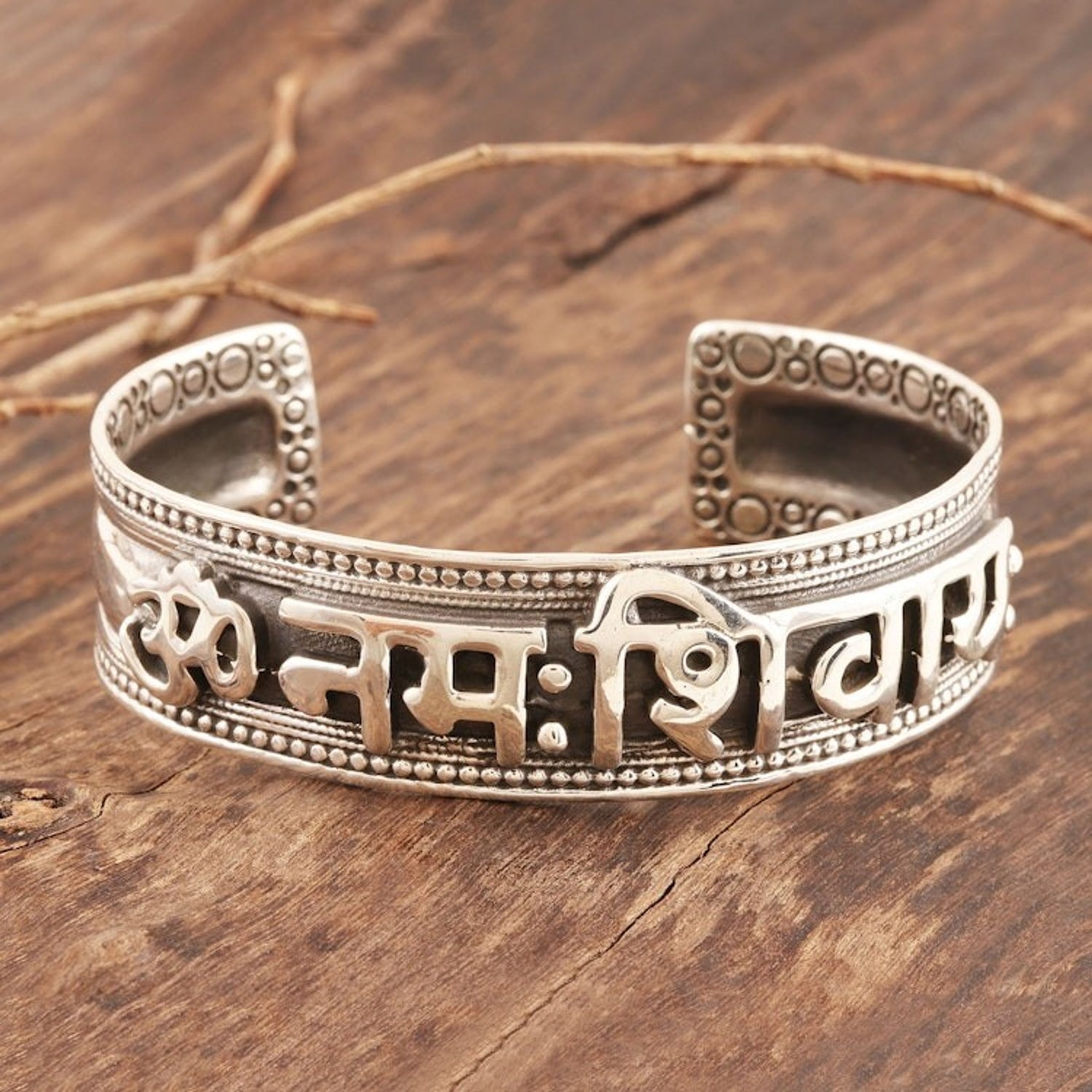 Hand Made Sterling Silver Hindi Cuff Bracelet 'Shiva Prayer'