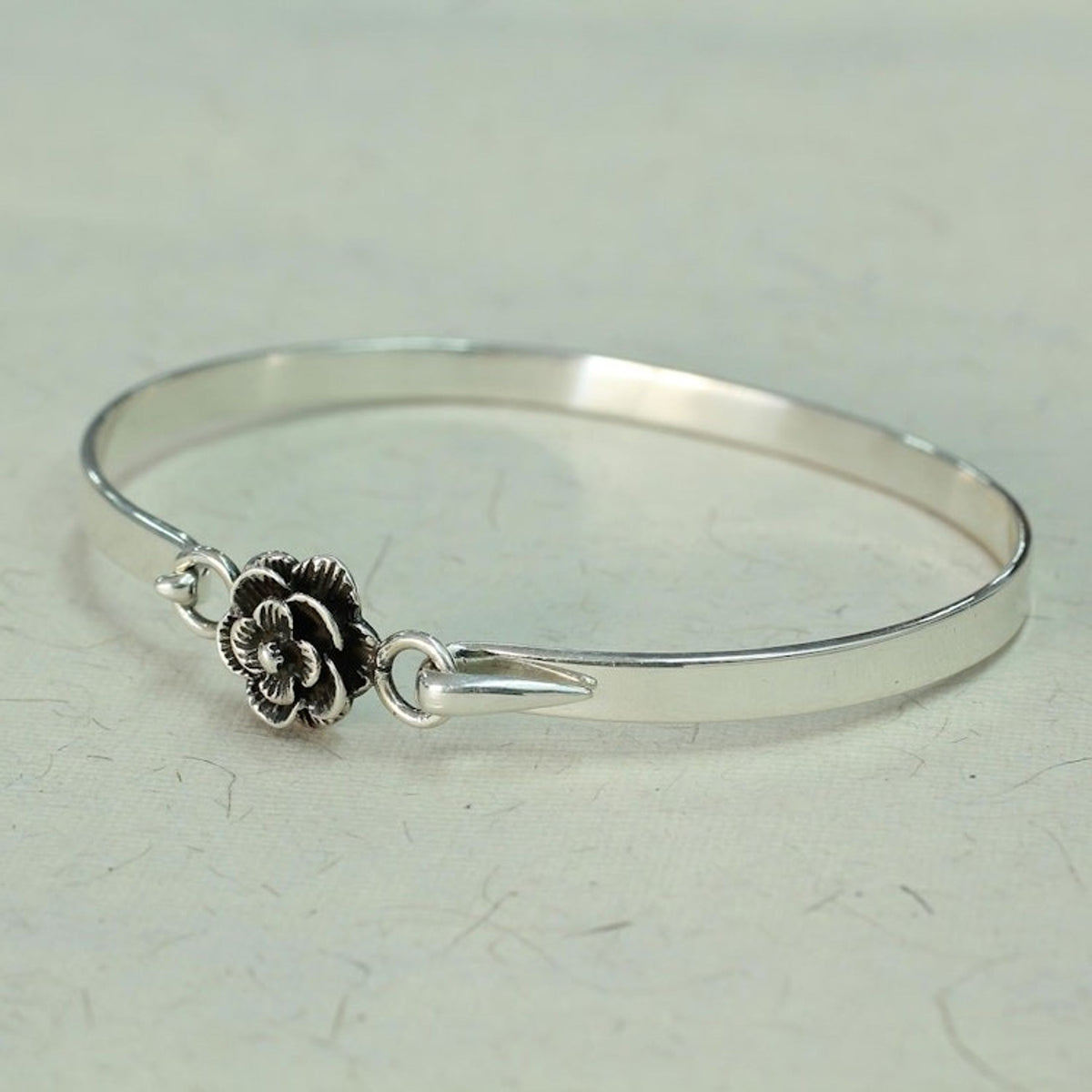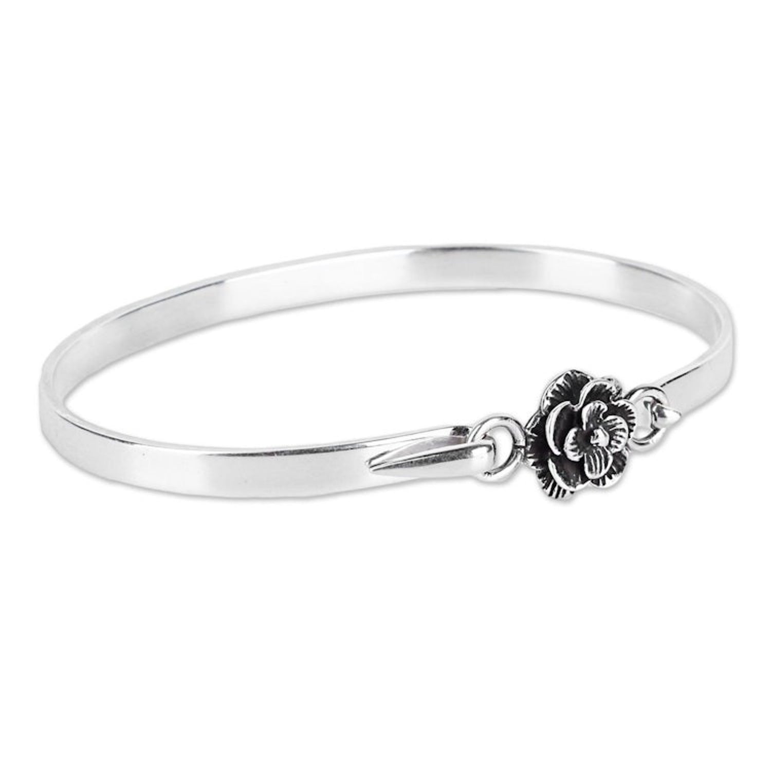 This 'Rose Beauty' Rose Bracelet by Independent Artisans is a simple yet exquisite piece that celebrates the timeless elegance of a rose. Handcrafted by Indian artist Neeru Goel, this sterling silver bracelet features an intricately designed rose that stands out with its beautiful combination finish. This bracelet is a perfect blend of trend and classic style, making it a versatile accessory for any occasion. It is a beautiful reflection of the artist's lifelong passion for jewelry and her ability to turn a childhood love into a celebrated craft.