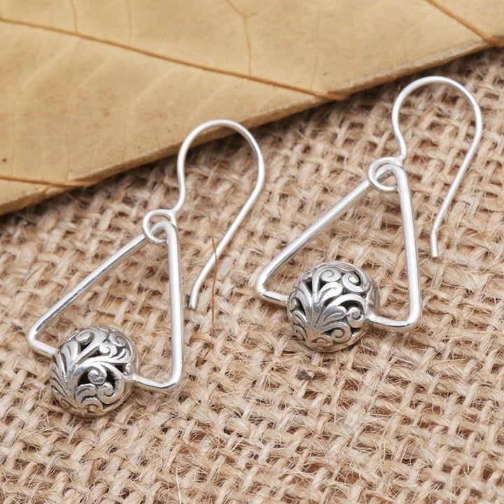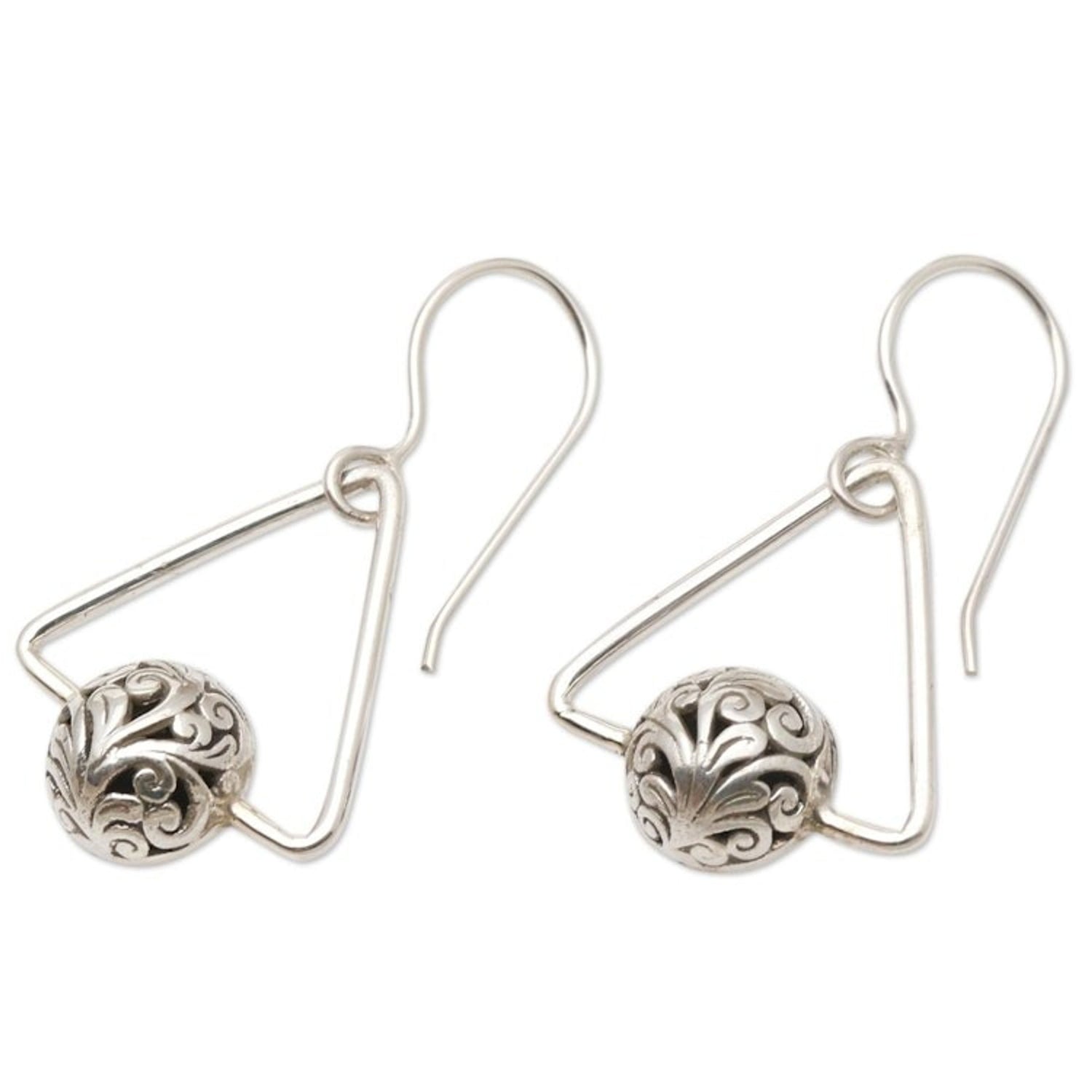 These 'Half Hope' Triangle Dangle Earrings by Independent Artisans are a lovely and modern accessory with a story of resilience and community. Designed by Rosalia Tarigan, who helped revive a local silversmithing tradition in East Java, these earrings feature a polished, openwork triangle crafted from sterling silver. A Balinese engraving adds an unexpected and beautiful element to the design. Inspired by the bright light of monastery lanterns, these earrings are a unique piece that celebrates perseverance and the enduring soul of silver jewelry.