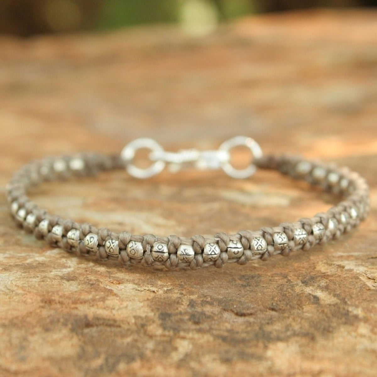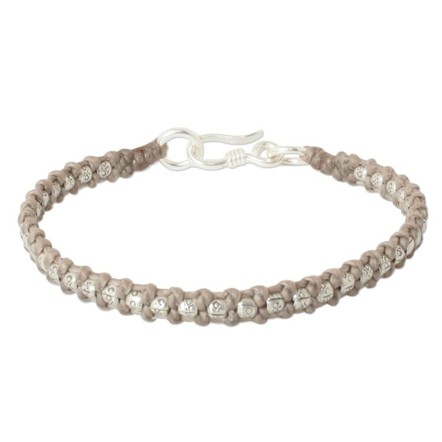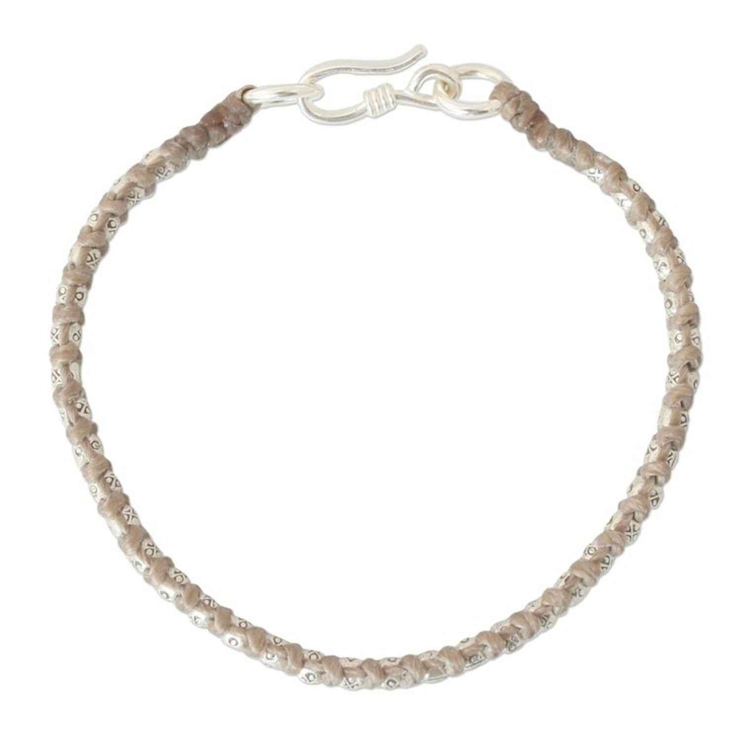 Hand Made Thai Silver Braided Bracelet 'Hill Tribe Heir in Khaki'