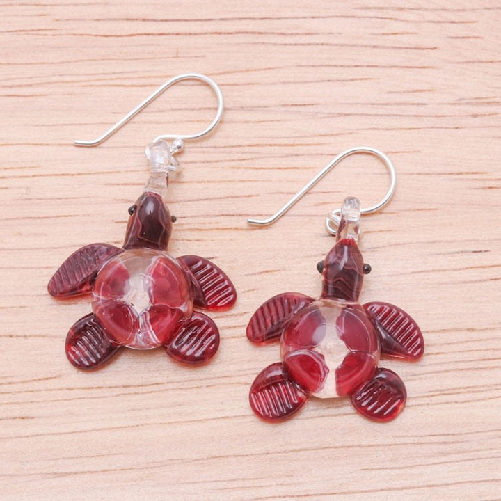 Handblown Red Glass Turtle Dangle Earrings from Thailand 'Turtle Passion'