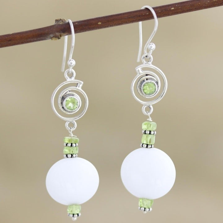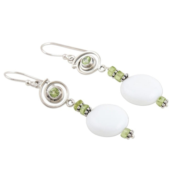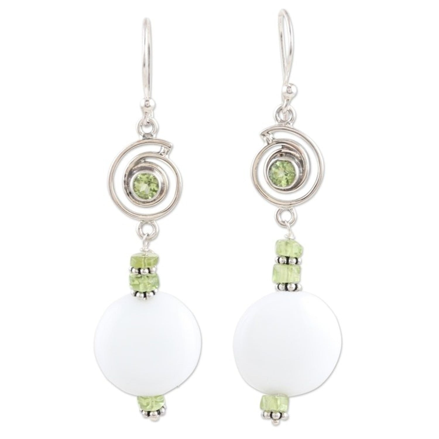 Handcrafted Agate and Peridot Dangle Earrings from India 'Spring Chill'