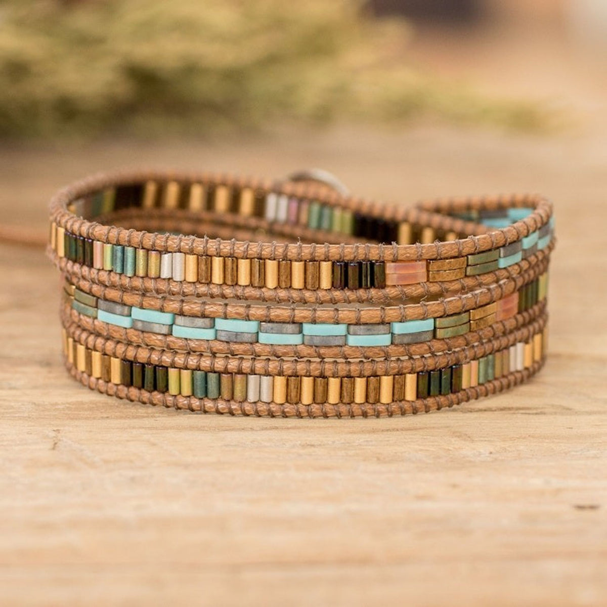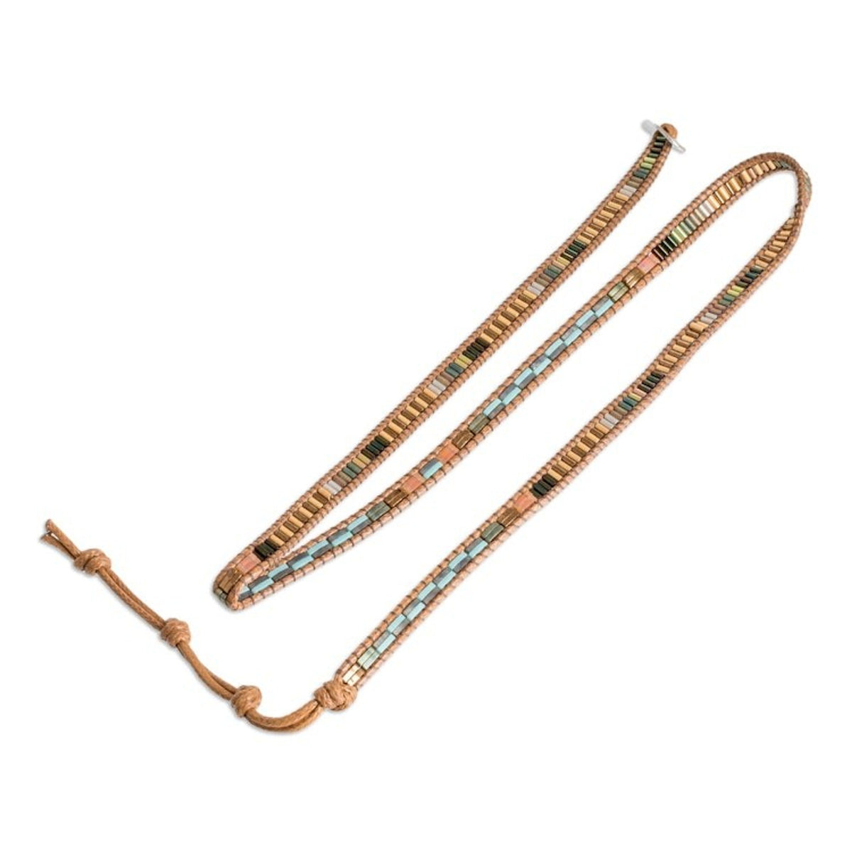 Handcrafted Brown and Blue Glass Beaded Wrap Bracelet 'San Cristobal in Autumn'