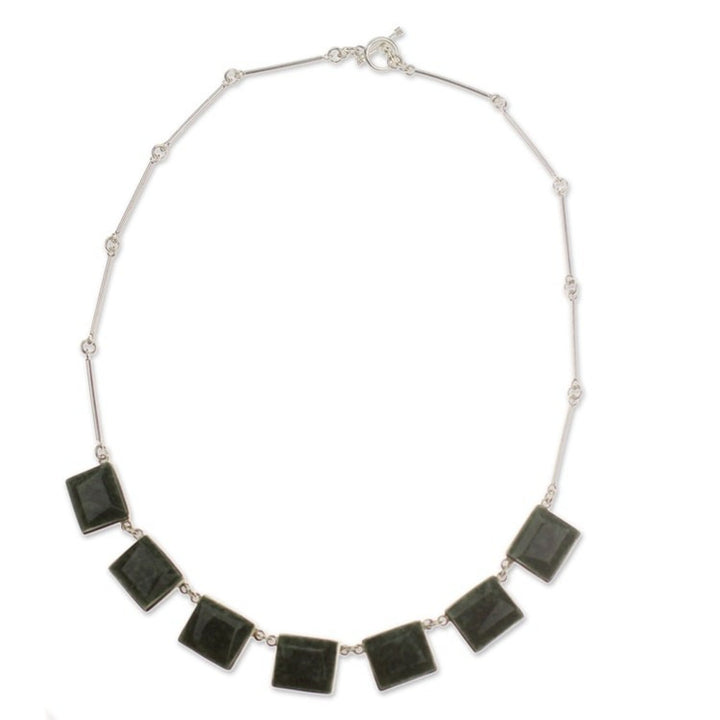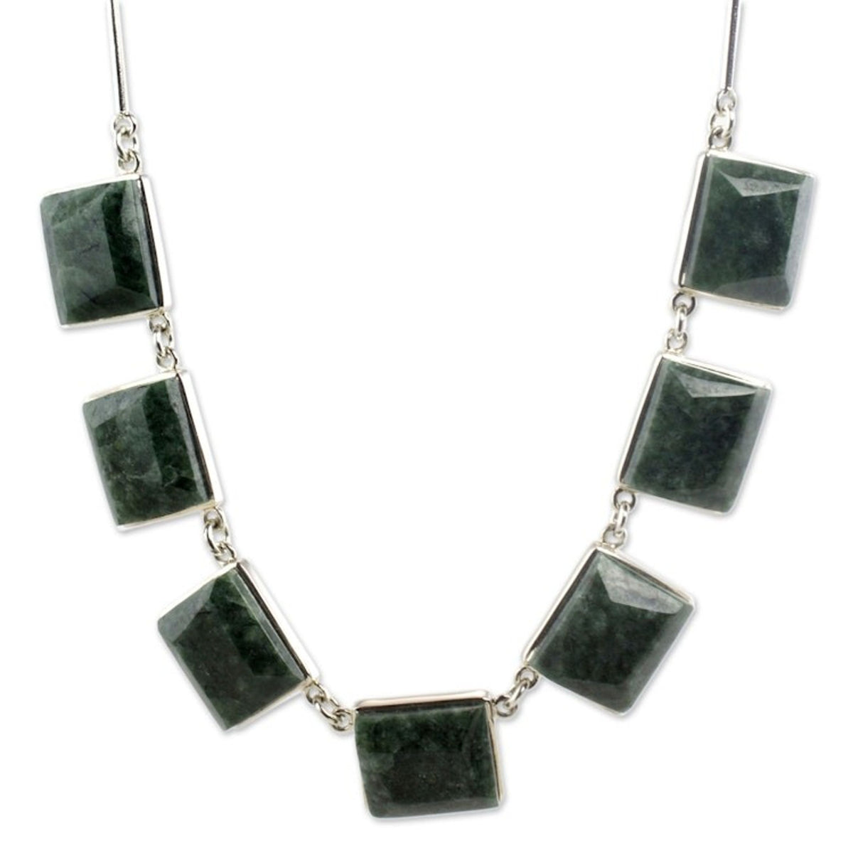 This Handcrafted Central American Sterling Silver Jade Necklace 'Love Immortal' by Independent Artisans is a stunning piece that honors the sacred value of Guatemalan jade. The Jimenez Family played with geometry and angles to create a design that features squares of natural jade set in sterling silver encasings. Jade, regarded as more valuable than gold by the ancient Aztec and Maya, symbolizes immortality and is believed to attract love and money. This necklace reflects the resilience and creativity of a family determined to transform challenges into lasting beauty.