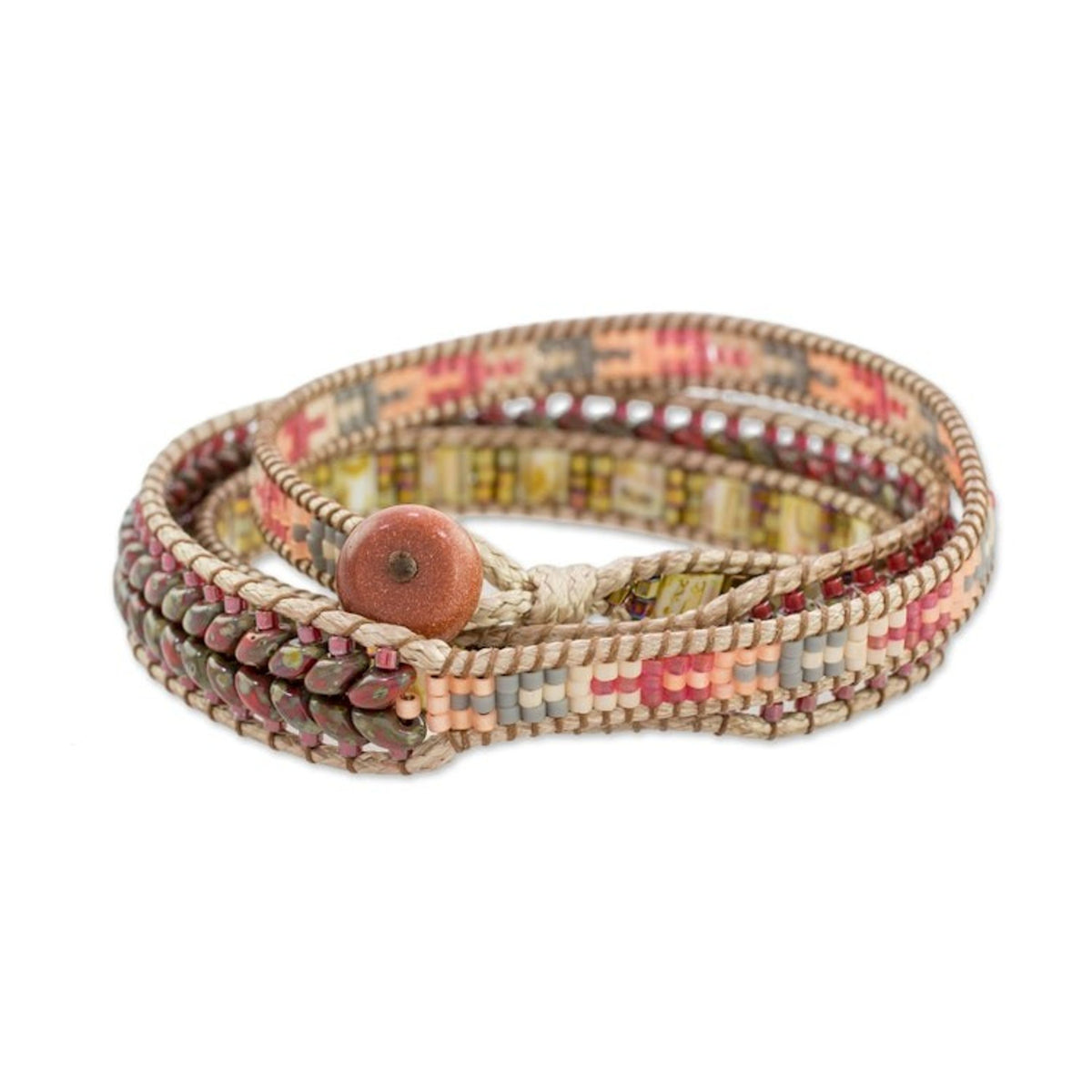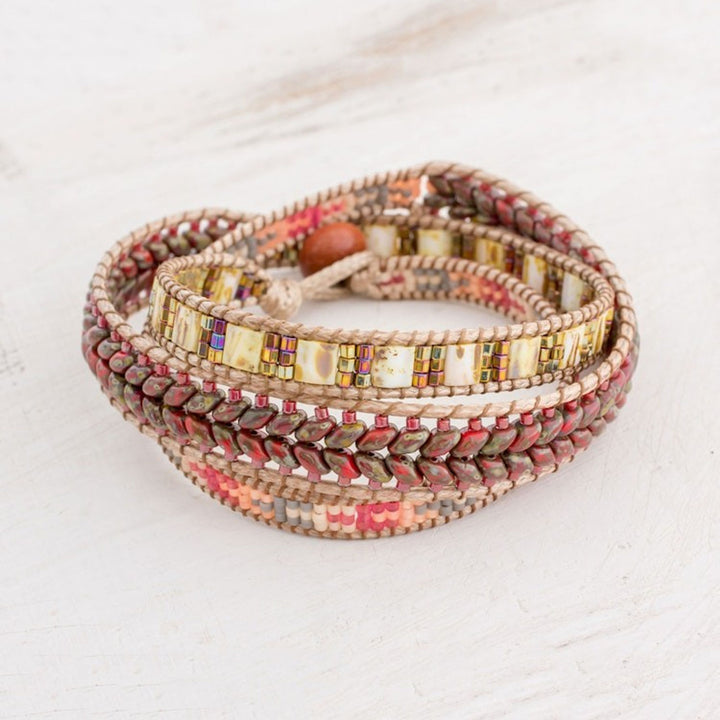 Handcrafted Glass Beaded Wrap Bracelet from Guatemala 'Country Land'