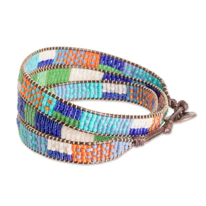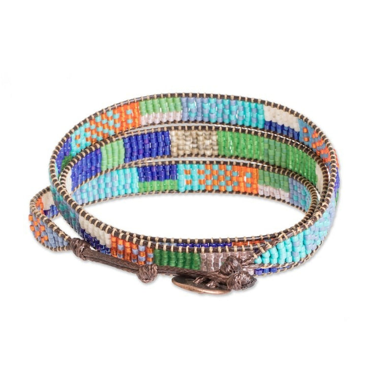 This Handcrafted Glass Beaded Wrap Bracelet in Intense Colors 'Intense Mosaic' by Independent Artisans is a vibrant accessory that commands attention. Designed by Alvaro Ratzan, the bracelet is embellished with a mosaic pattern of intense glass beads, creating a design that carries both artistry and emotion. The pewter button clasp provides a comfortable and secure fit, making this piece both beautiful and functional.