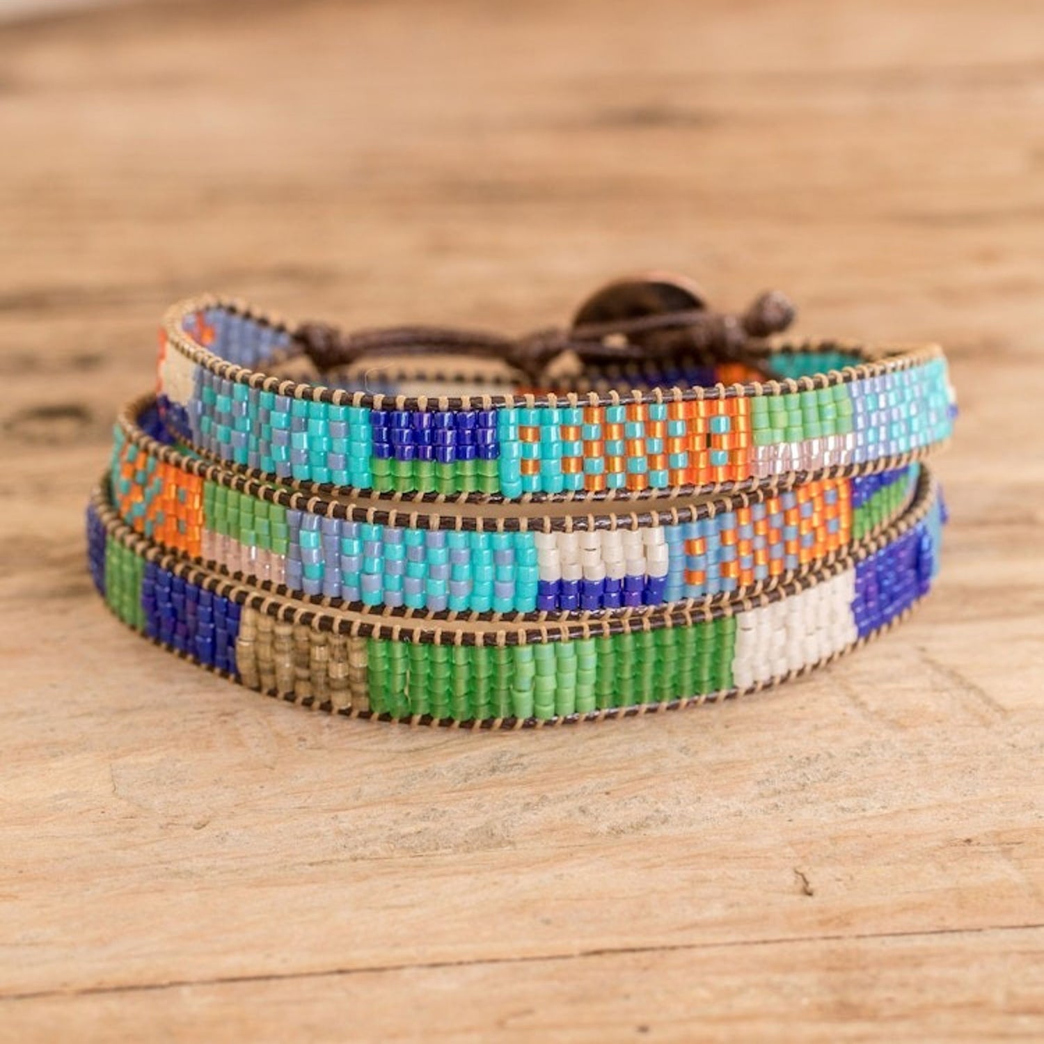 Handcrafted Glass Beaded Wrap Bracelet in Intense Colors 'Intense Mosaic'