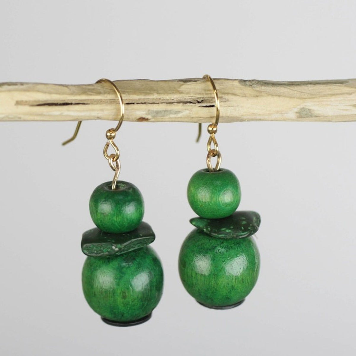 Handcrafted Green and Mighty Sese Wood Dangle Earrings 'Green and Mighty'