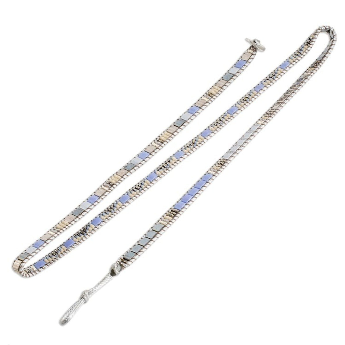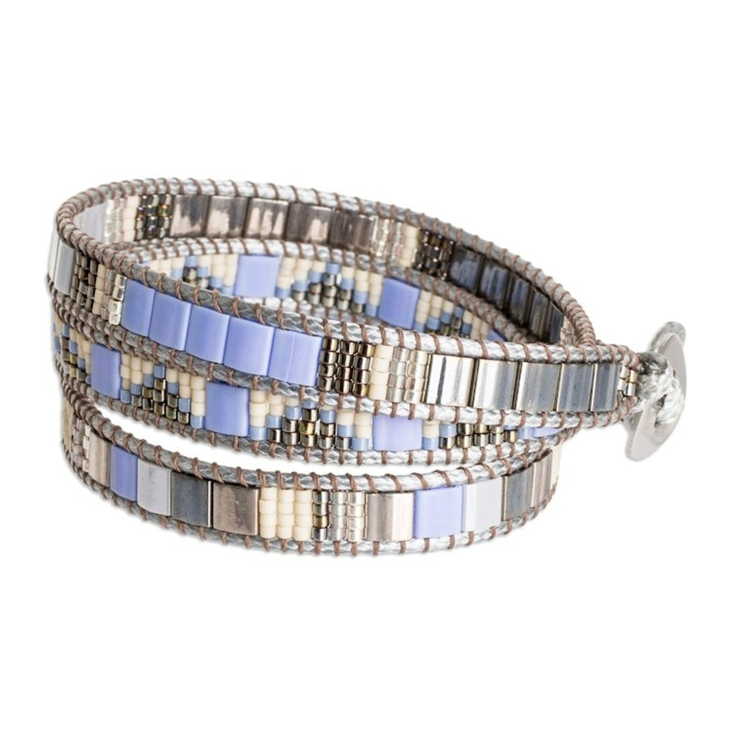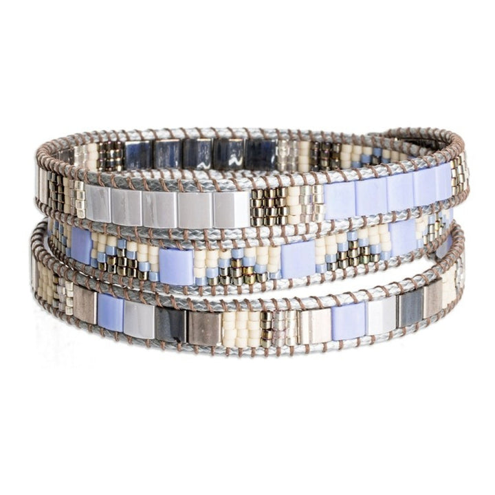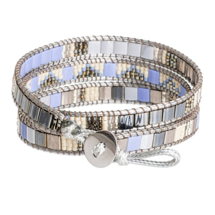 Handcrafted Grey Blue Beige Glass Beaded Wrap Bracelet 'Santa Fe in Grey'