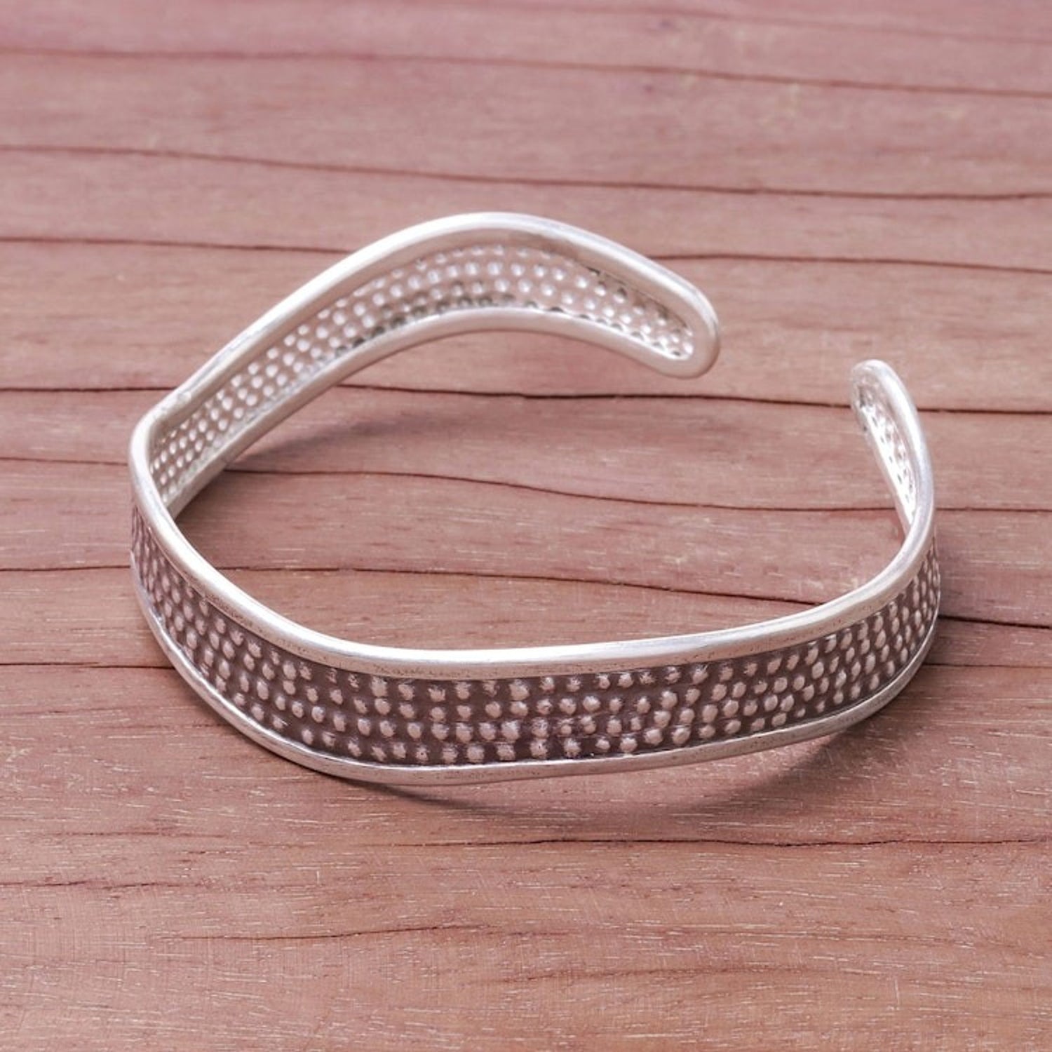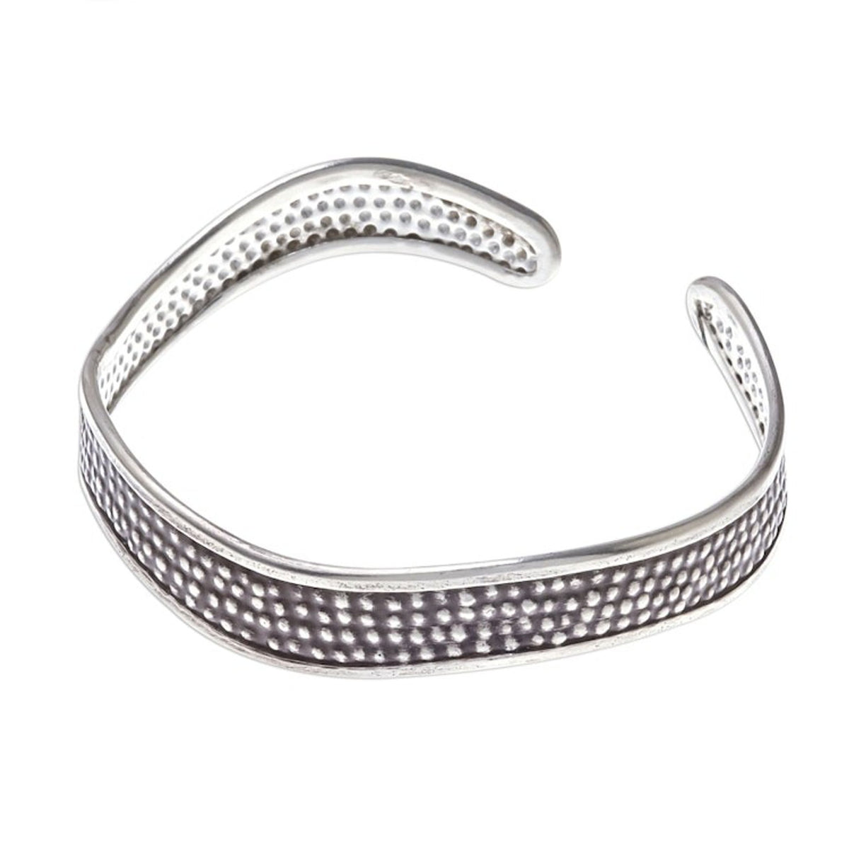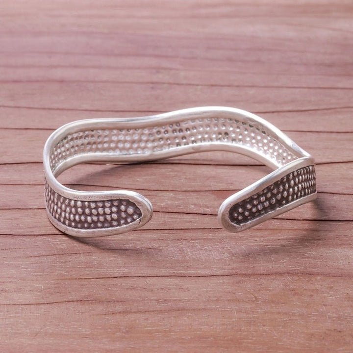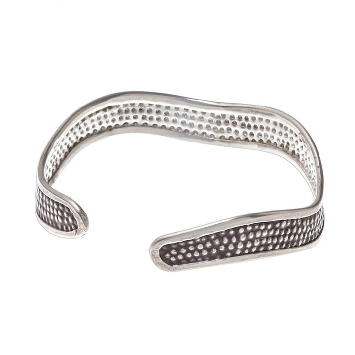 Handcrafted Karen Silver Textured Wave Cuff Bracelet 'Texture Wave'