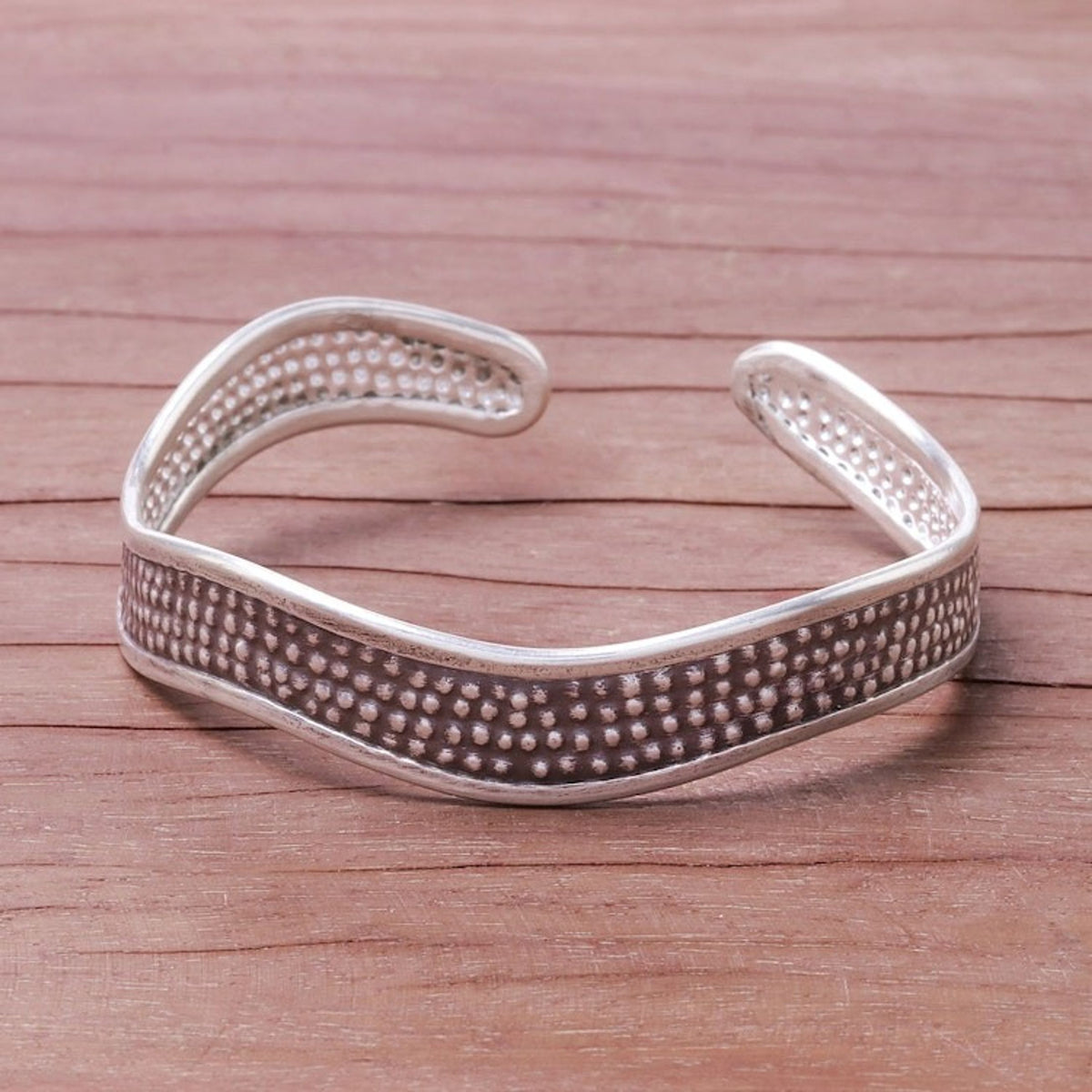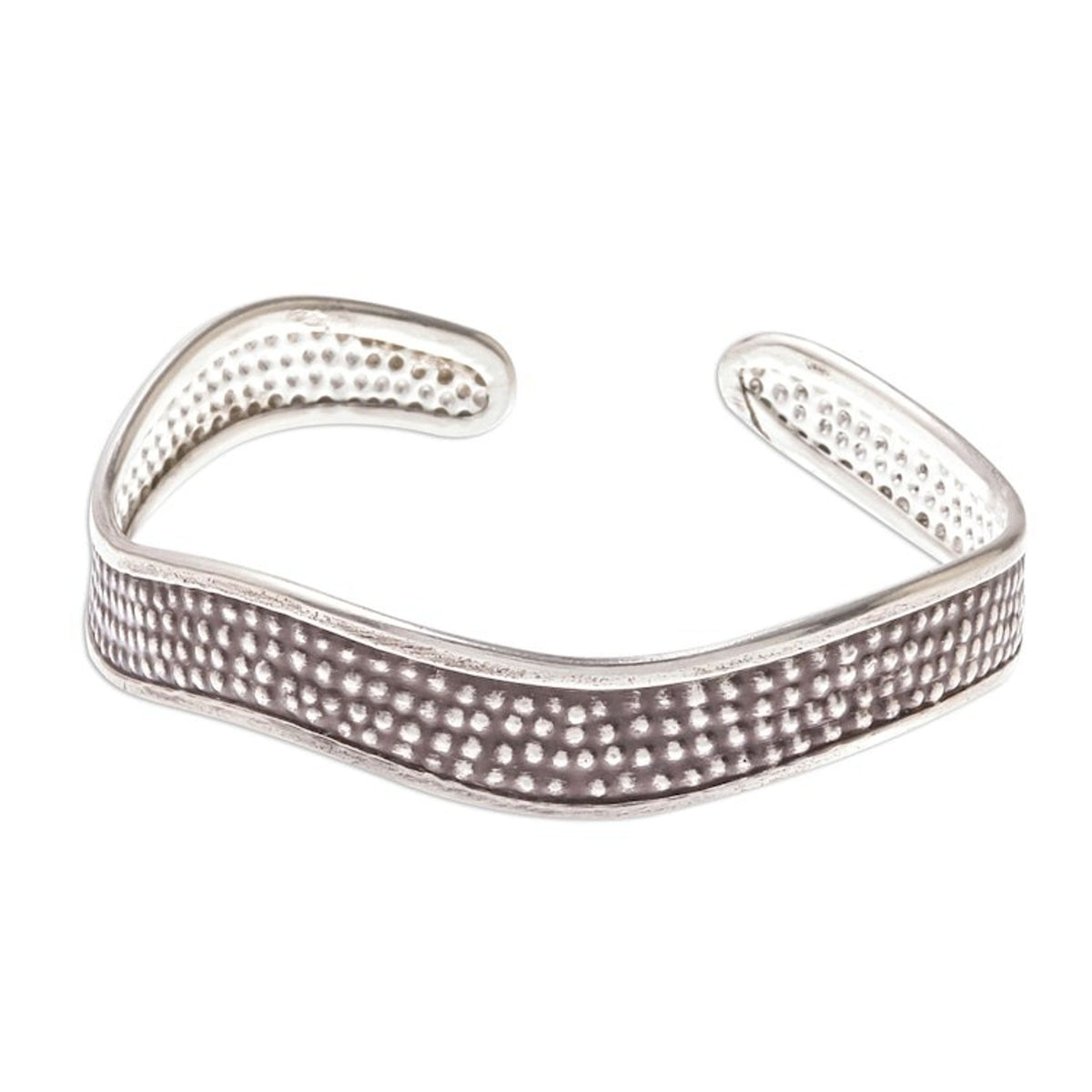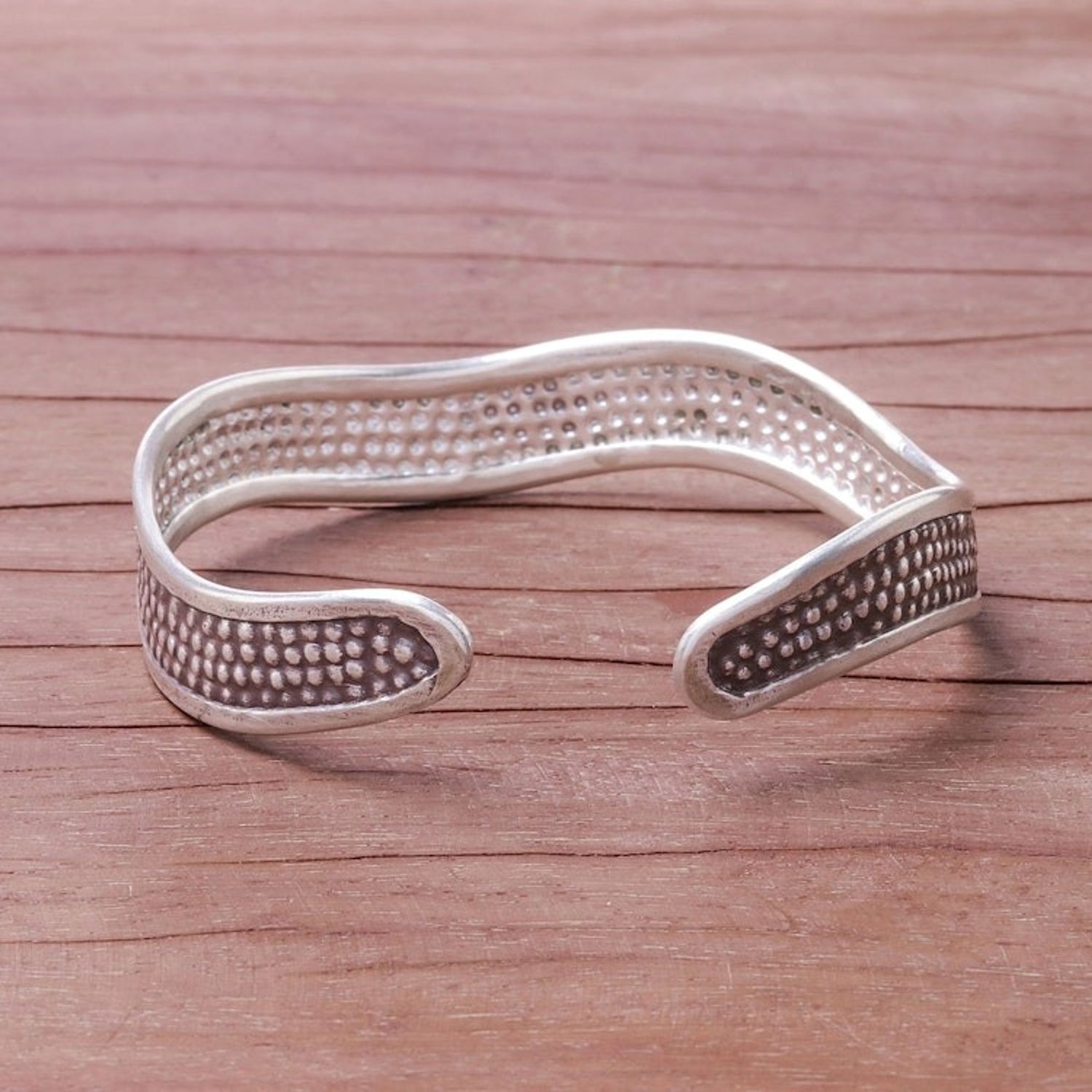 Handcrafted Karen Silver Textured Wave Cuff Bracelet 'Texture Wave'
