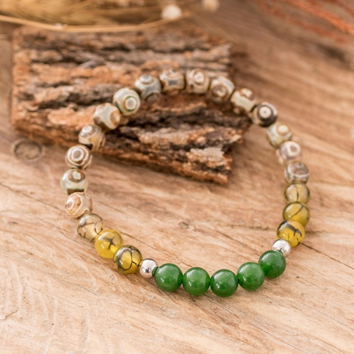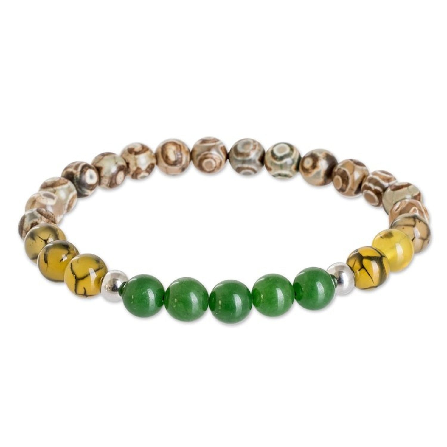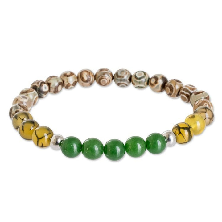 Handcrafted Men's Agate and Jade Beaded Stretch Bracelet 'Earth and Forest'