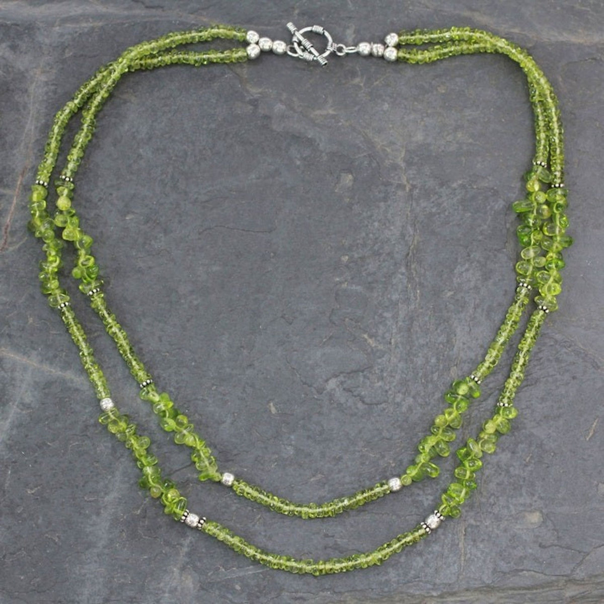 Handcrafted Natural Peridot Double Strand Necklace 'Nature's Charm'