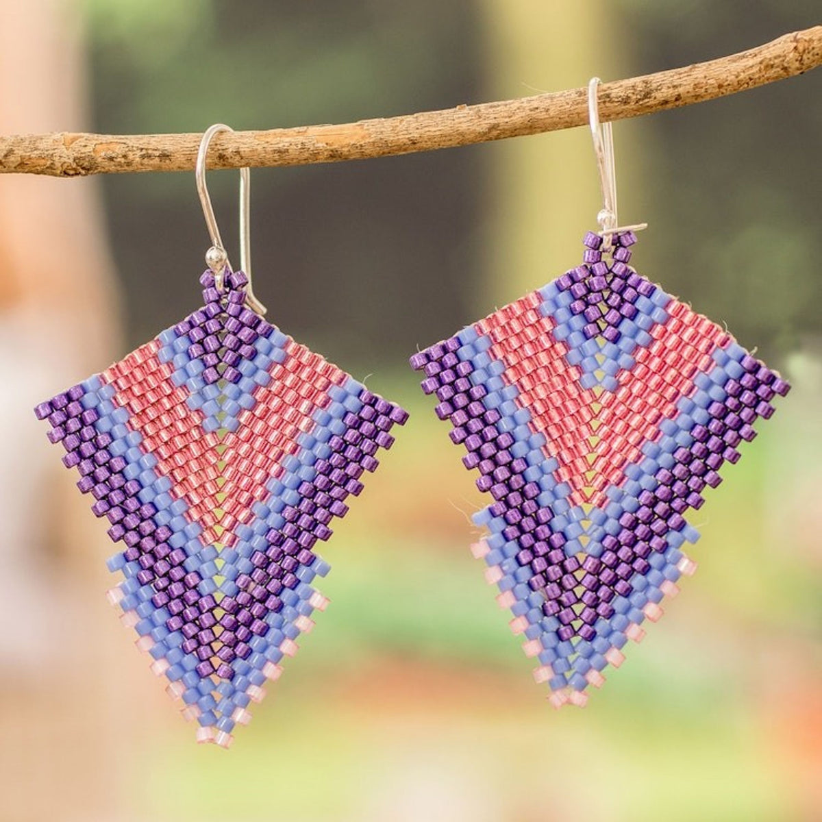 These Handcrafted Purple and Pink Glass Beaded Dangle Earrings 'Purple Signals' by Independent Artisans are an enchanting and charming accessory. Designed by Hands of Atitlán, the earrings feature a geometric shape enriched by a combination of purple and pink glass beads. The piece reflects the organization's mission to offer education, empowerment, and fair employment to break cycles of poverty, and is a beautiful representation of artistry, resilience, and social transformation.