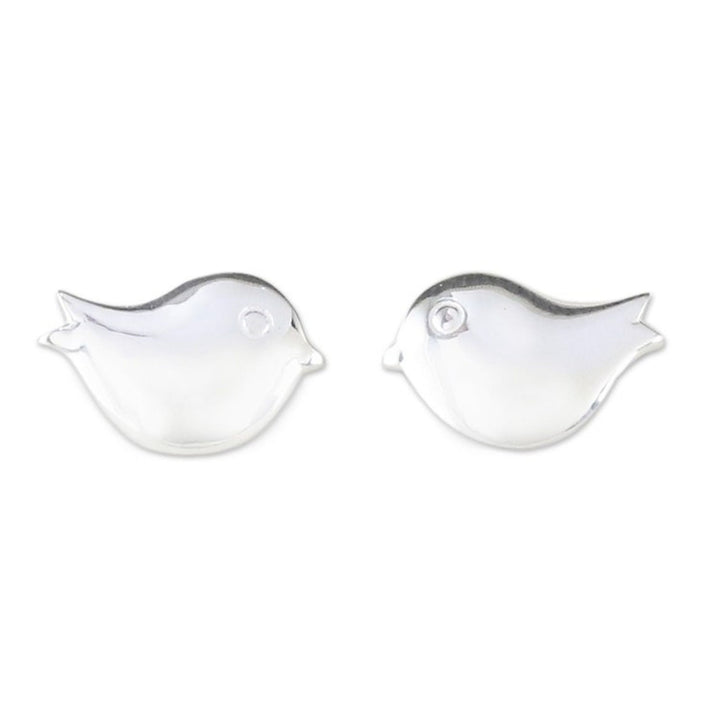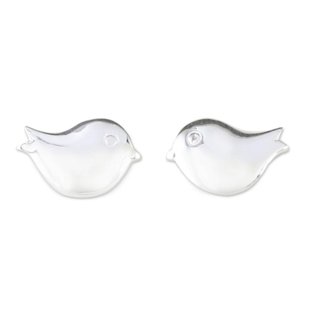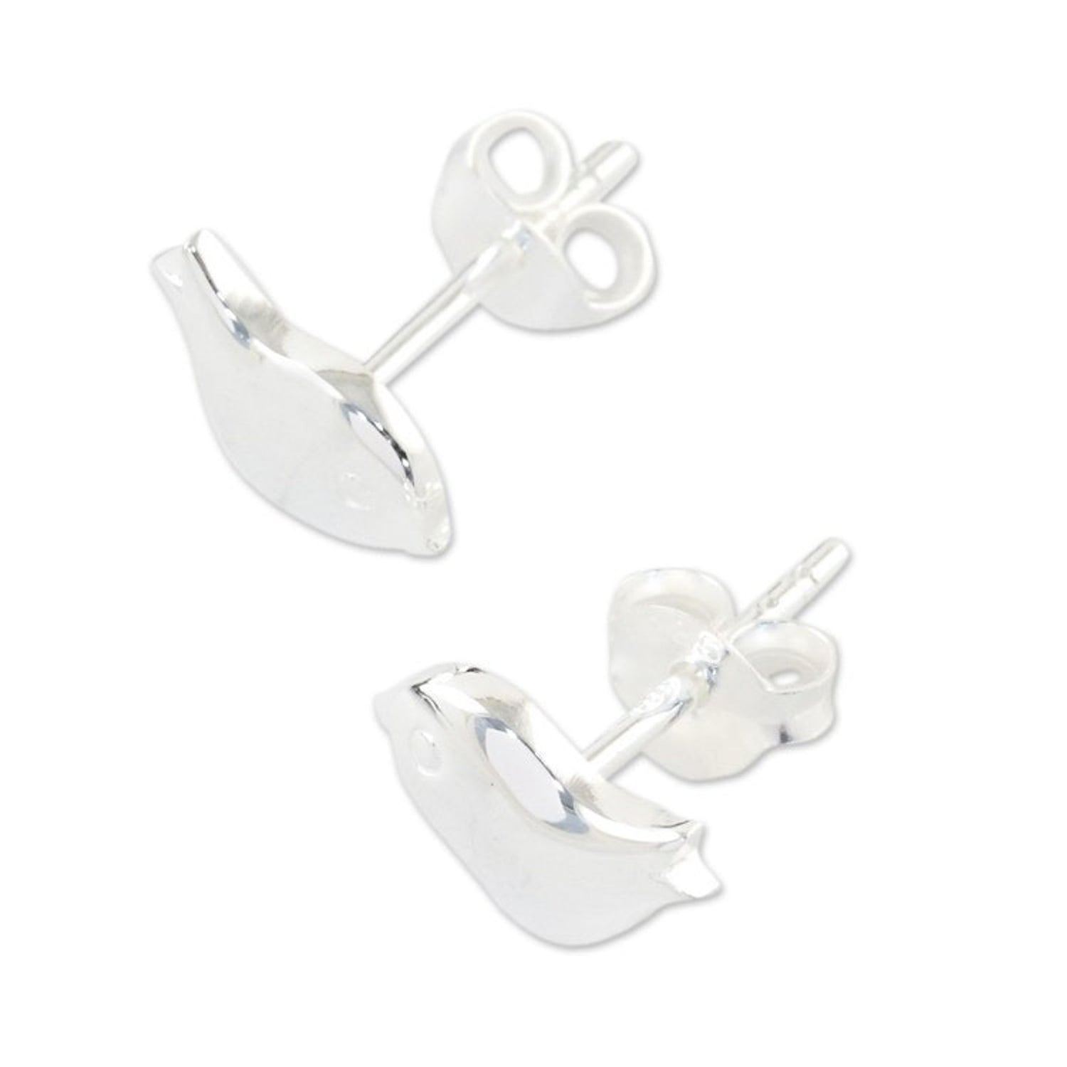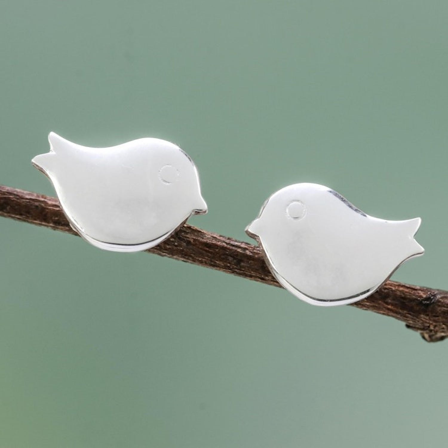 Handcrafted Sterling Silver Bird Stud Earrings from Thailand 'Little Birds'