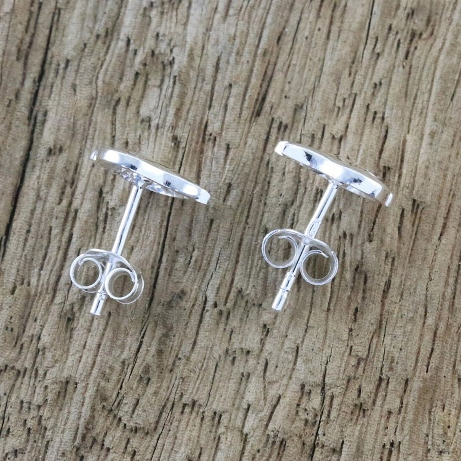 Handcrafted in Thailand with .925 sterling silver, these stud earrings have a high-polish finish. Each earring measures 0.2 inches in length and 0.4 inches in width.