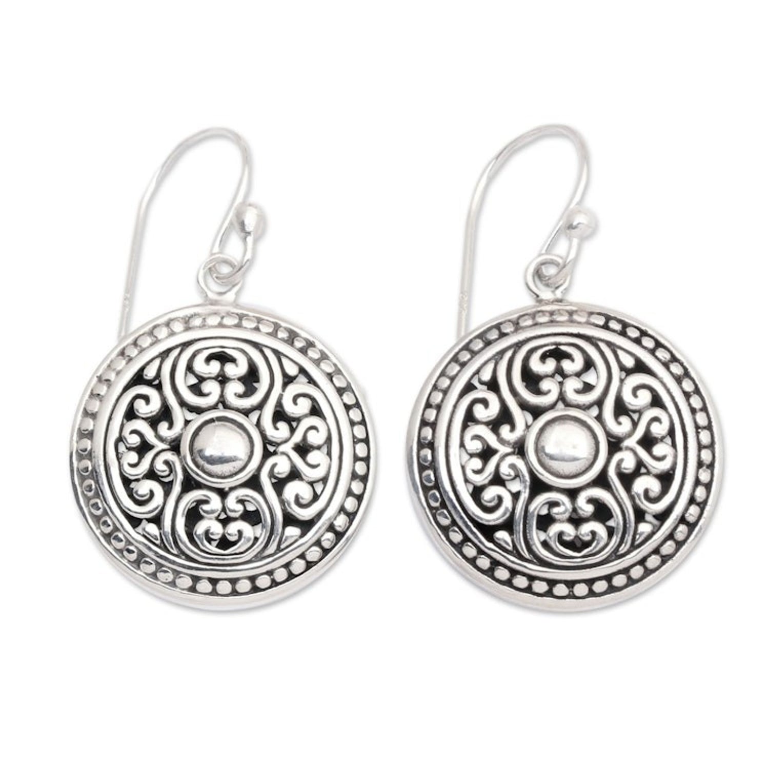 Handcrafted in Indonesia with .925 sterling silver, these hook earrings have a combination finish. Each earring measures 1.3 inches in length and 0.7 inches in width.