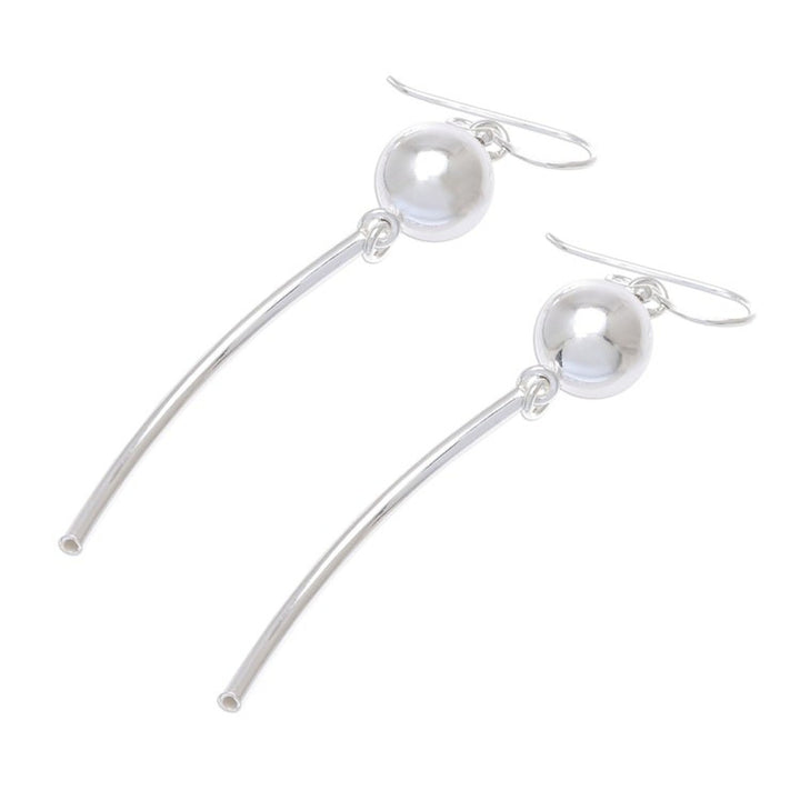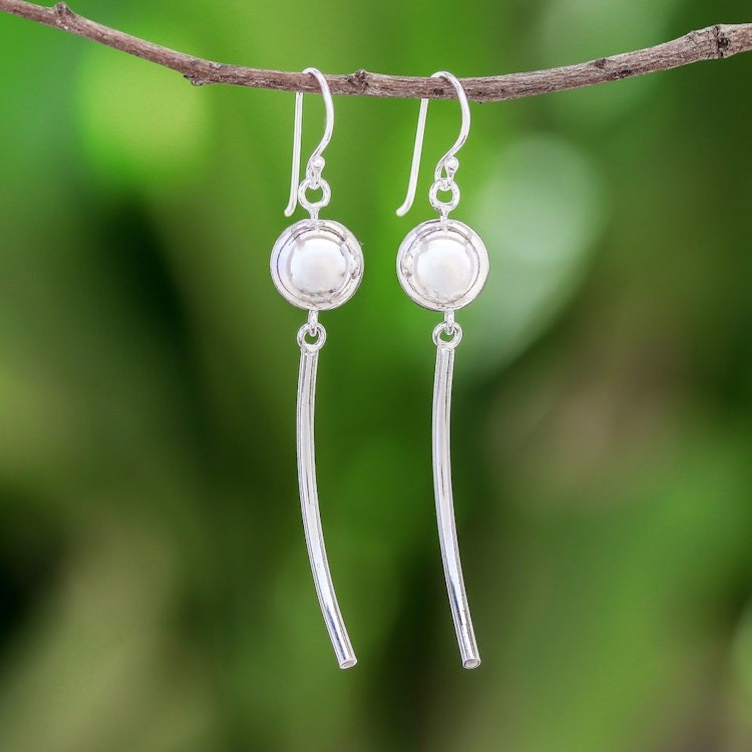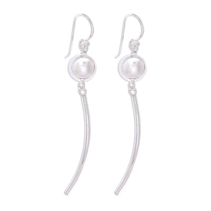 These Handcrafted Sterling Silver Dangle Earrings from Thailand 'Swinging Song' by Independent Artisans are an elegant and versatile accessory. Designed by Pichaya, the earrings feature gleaming orbs below which curved bars dangle elegantly. The piece, which is handcrafted from high-polish sterling silver, reflects the artisan's commitment to creating lightweight, versatile pieces intended for daily wear.