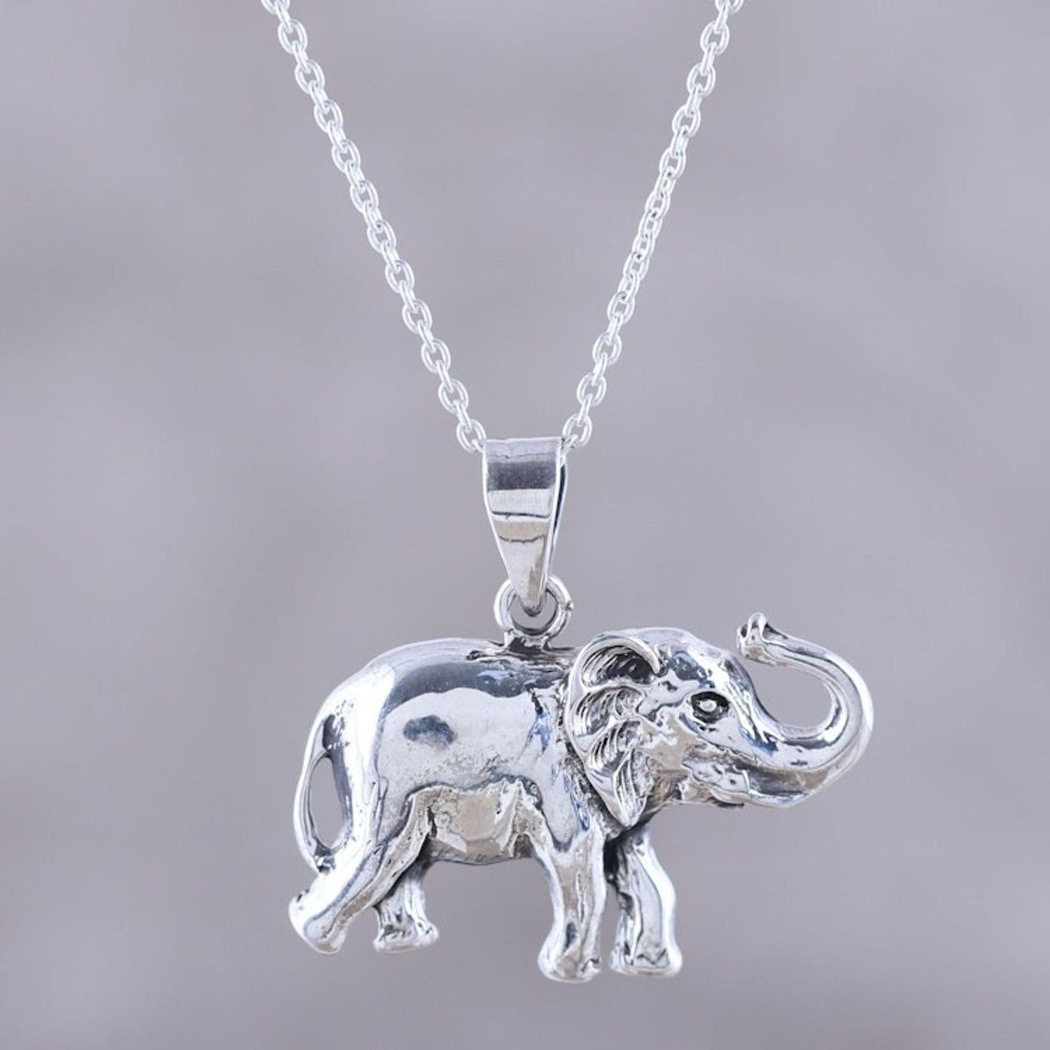 Handcrafted Sterling Silver Elephant Pendant Necklace 'Gleeful Elephant'