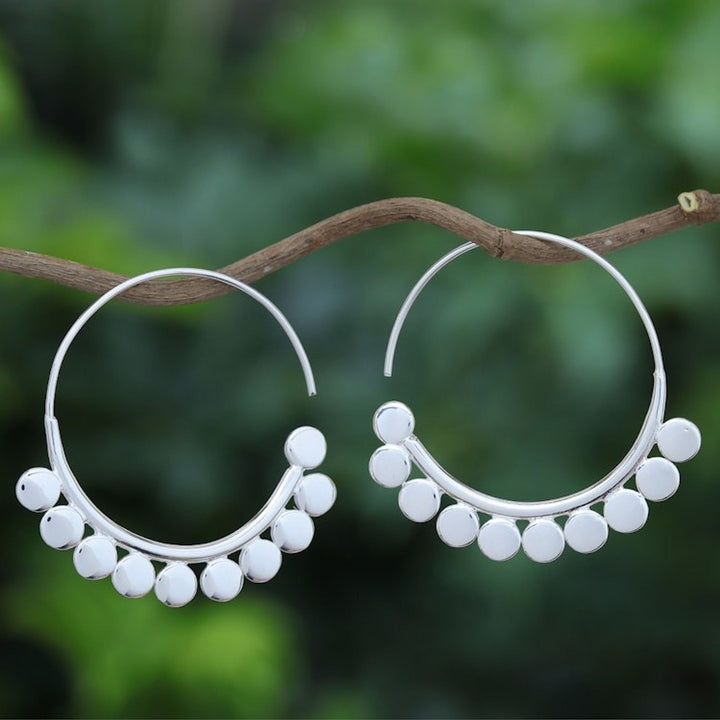 These Handcrafted Sterling Silver Half-Hoop Earrings from Thailand 'Modern Empire' by Independent Artisans are a contemporary and cool accessory. Designed by Lalana, the half-hoop earrings are dotted with gleaming silver drops. The pieces are hand crafted from sterling silver and polished for a brilliant shine. They are a beautiful representation of the artisan's ability to blend traditional designs with contemporary style.