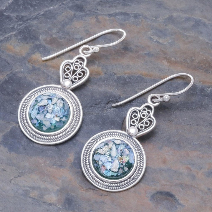 Handcrafted Thai Sterling Silver and Roman Glass Earrings 'Mesmerizing Color'