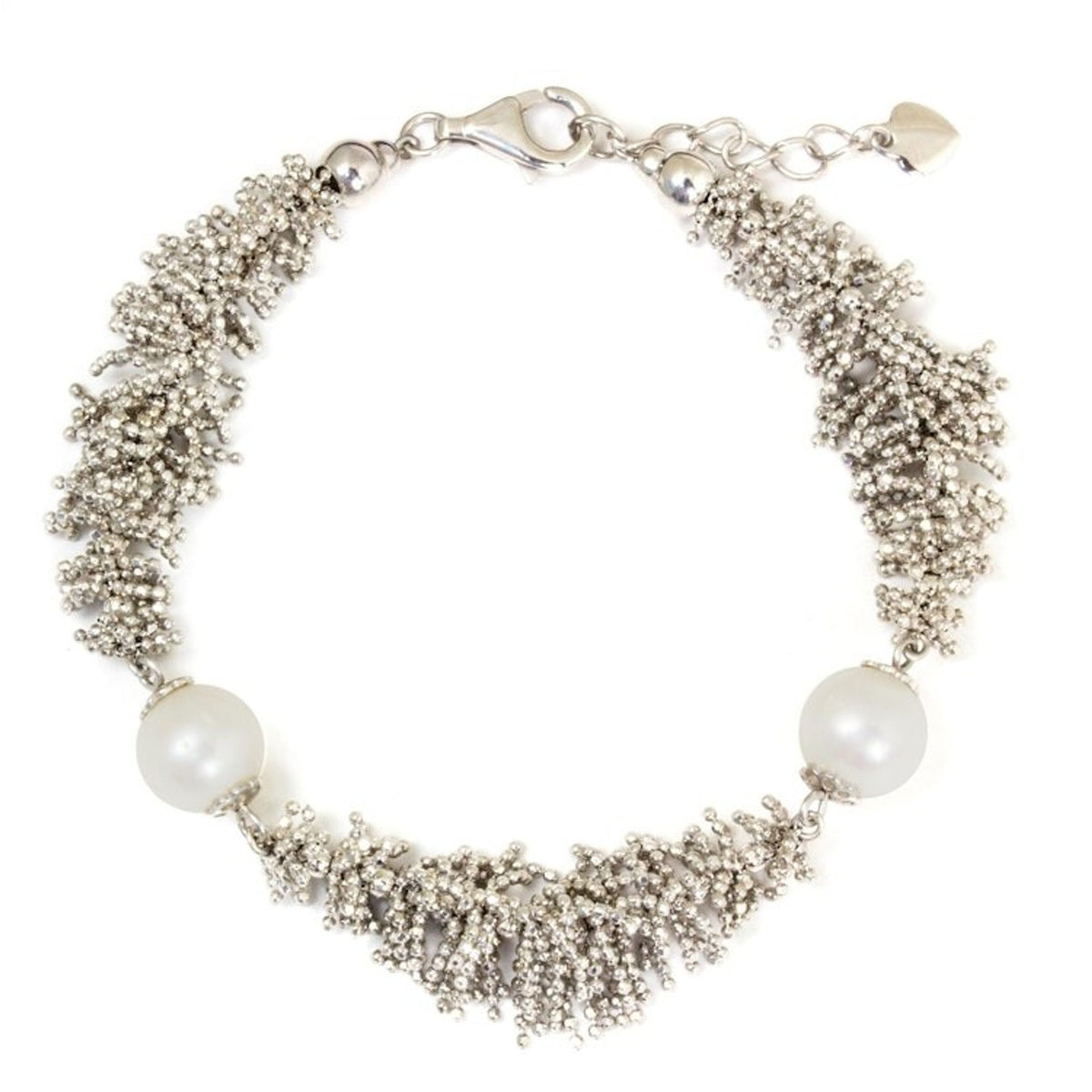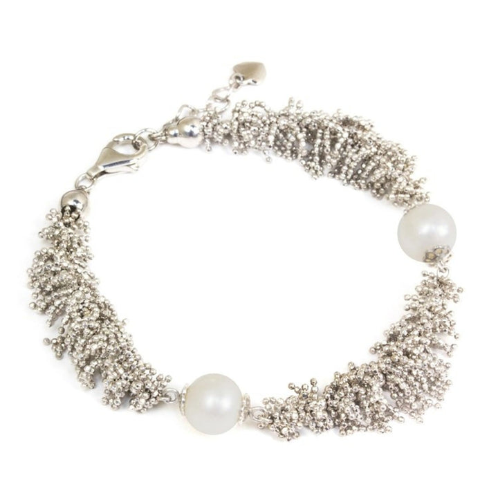 Handcrafted Thai Sterling Silver Bracelet Cultured Pearls 'White Coral Reef'