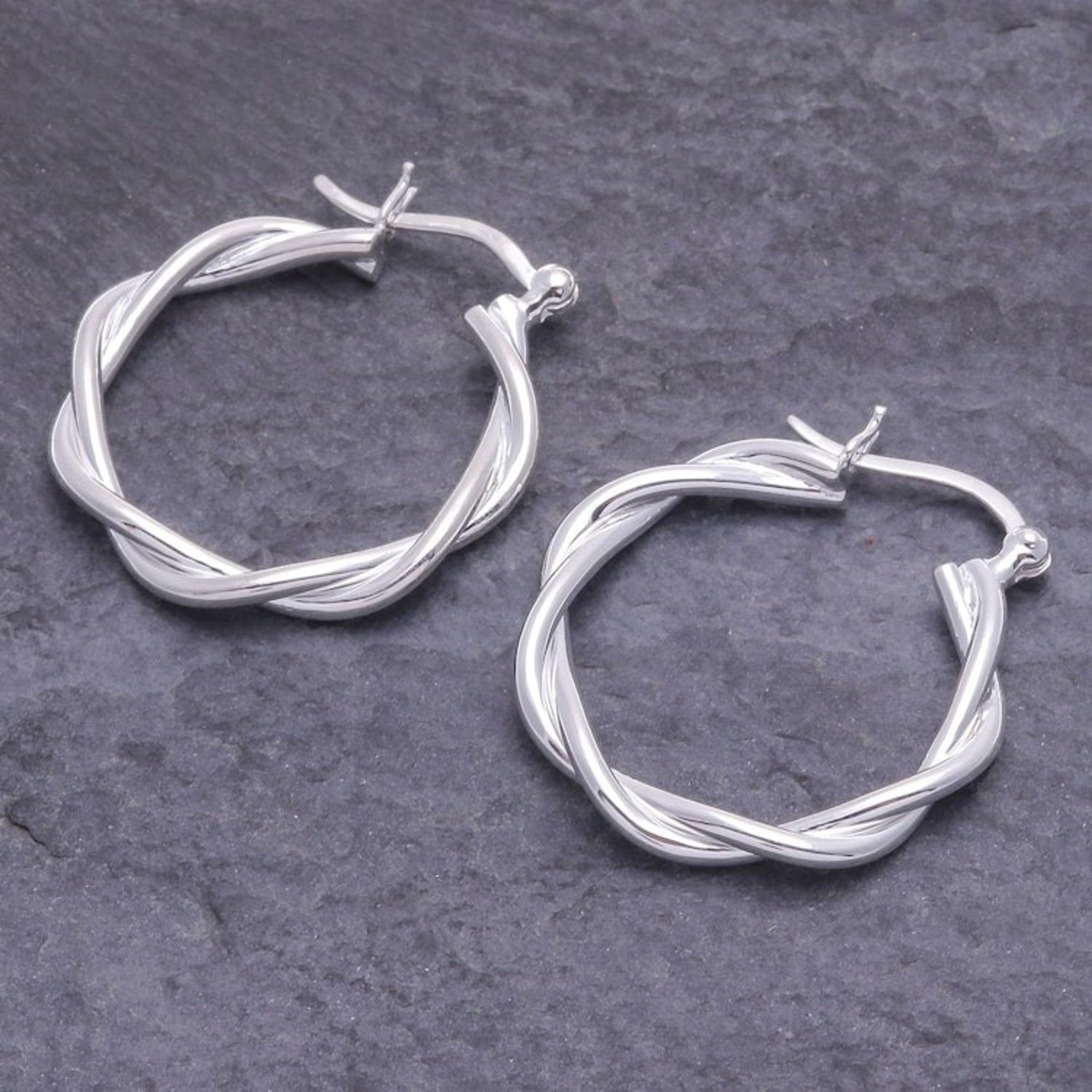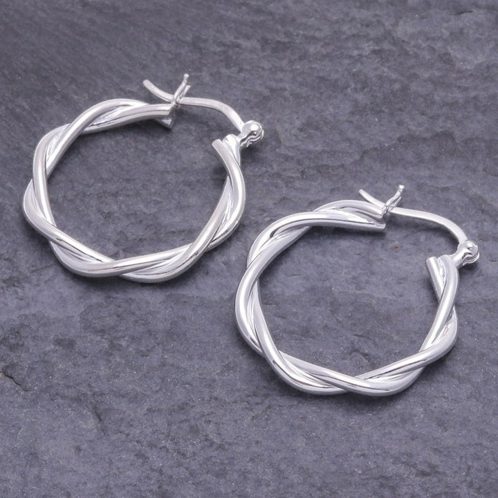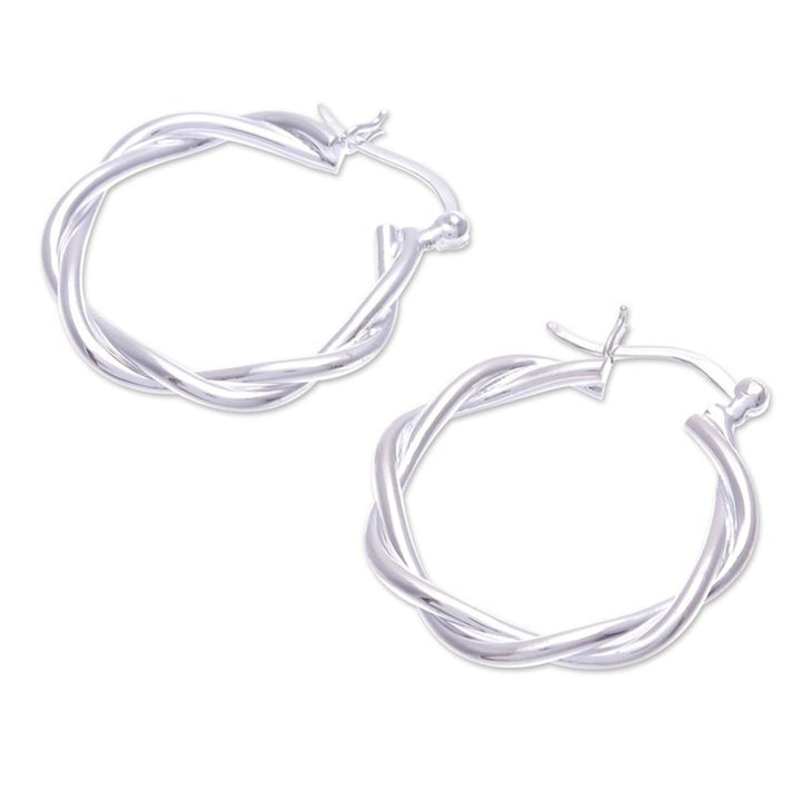 These Handcrafted Thai Sterling Silver Hoop Earrings 'Dancing Silver' are an elegant and modern accessory. Designed by Lalana, the hoop earrings are made from twisted pieces of gleaming silver. The Thai artisan gently polishes the precious metal for a brilliant shine. The pieces reflect the artisan's commitment to creating sustainable livelihoods for her collaborators and blending traditional designs with contemporary style.