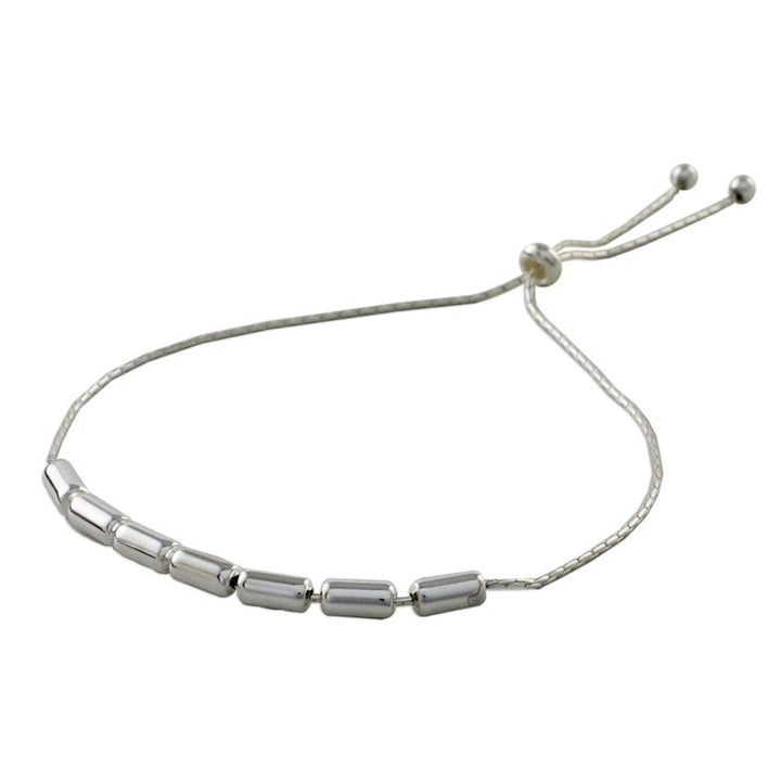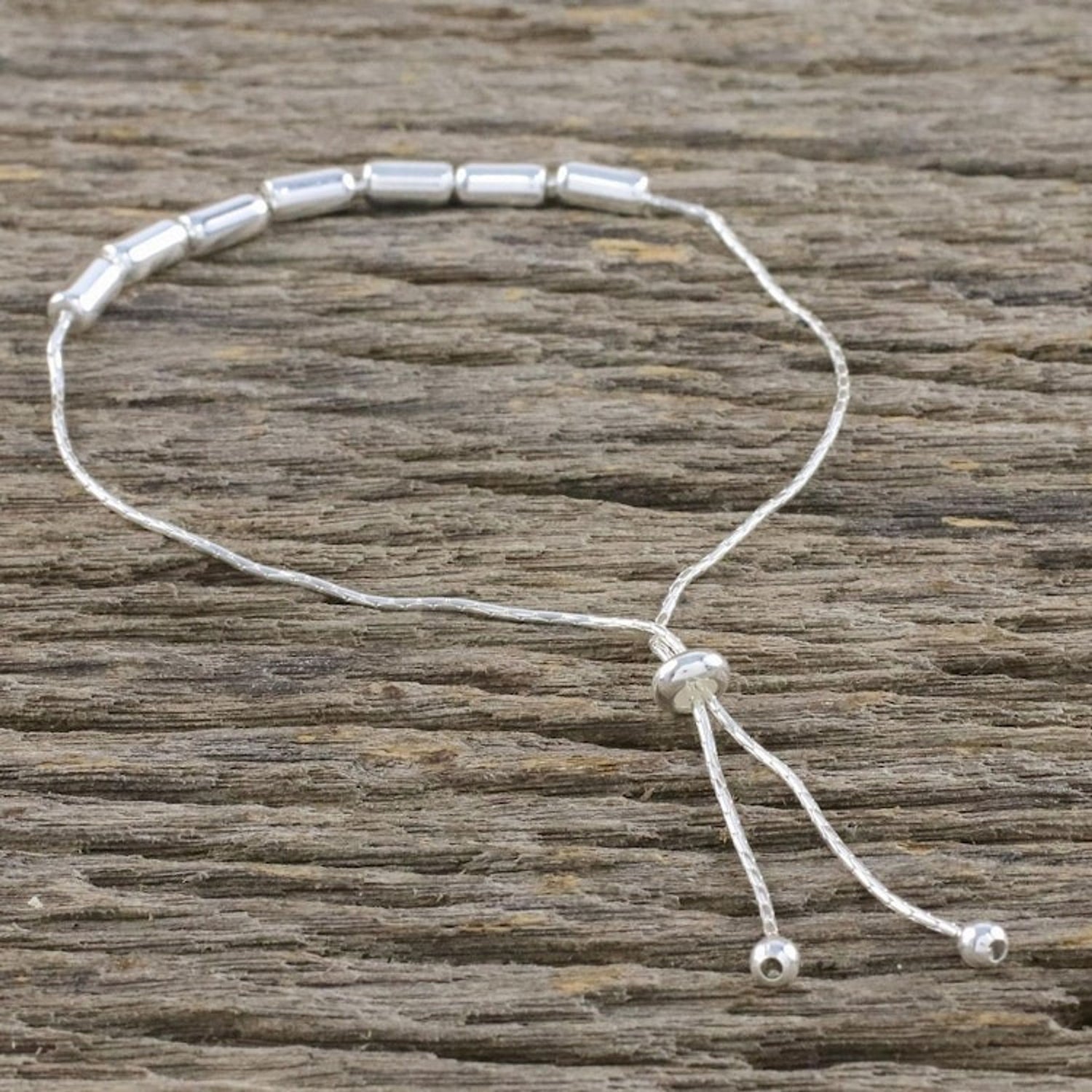 Handcrafted in Thailand with .925 sterling silver, this bracelet has an adjustable Boston link chain and a slide lock clasp. It measures from 7.3 to 9.8 inches in length.