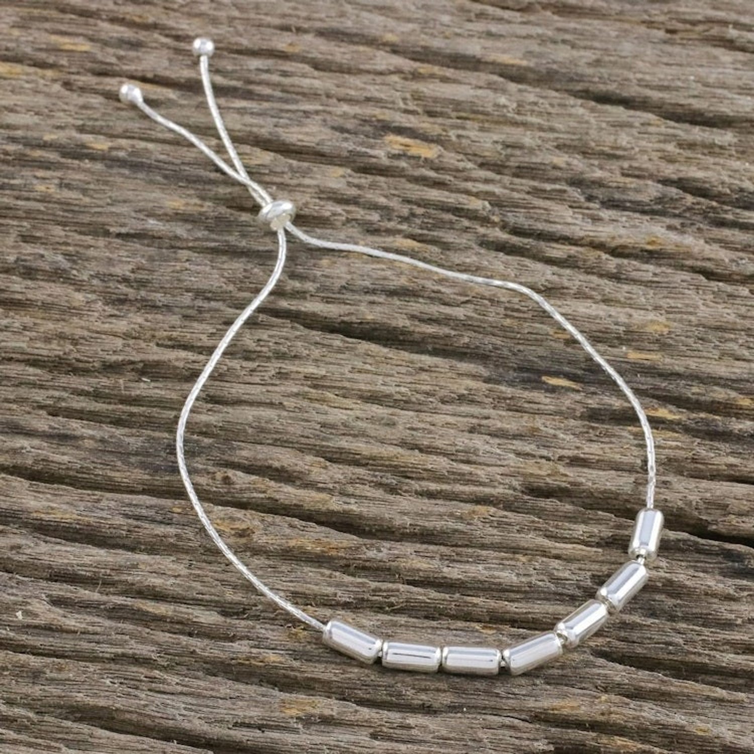 This Handmade 925 Sterling Silver Morse Code Mom Chain Bracelet 'Morse Code Mom' is a subtle and loving accessory. Designed by Pichaya, the bracelet links dot and dash pendants representing the letters M-O-M in Morse code. The piece, which blends contemporary simplicity with echoes of the past, is a beautiful representation of the artisan's vision to create accessible, comfortable jewelry that brings joy.