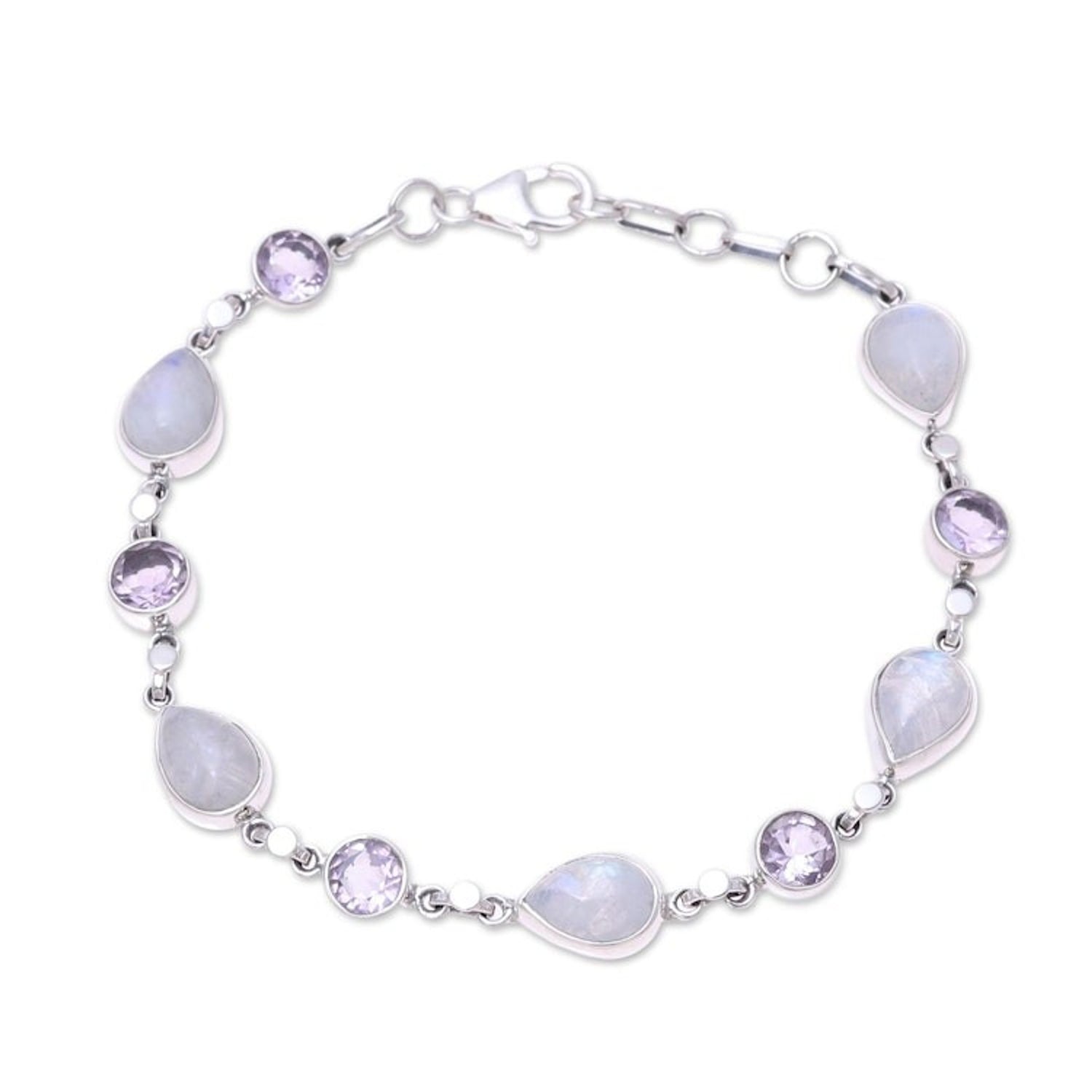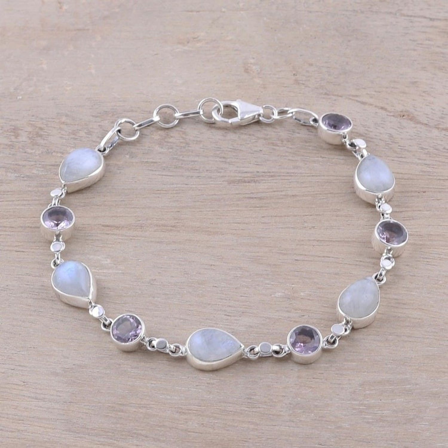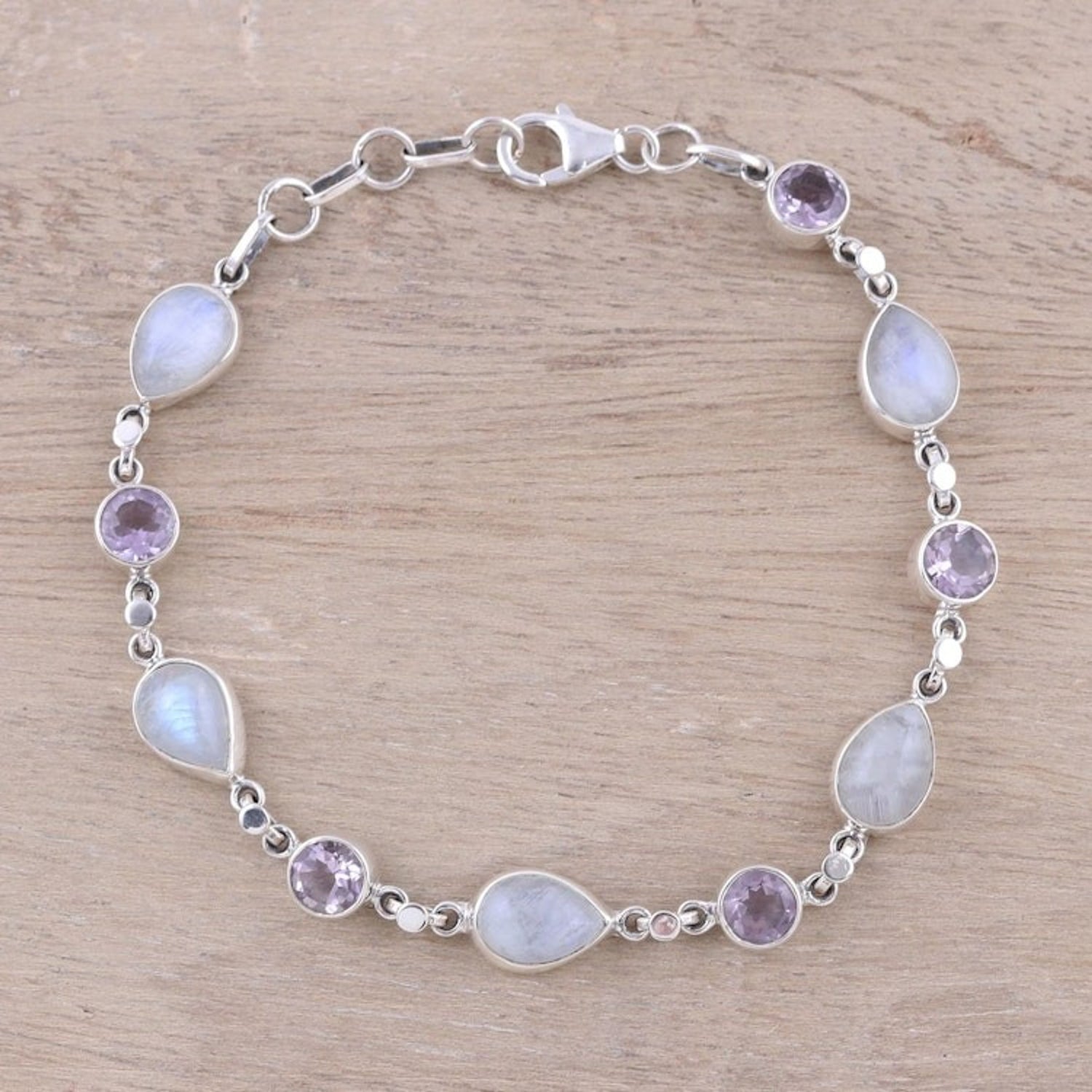 Handmade Amethyst Rainbow Moonstone Link Bracelet from India 'Misty Lilac'