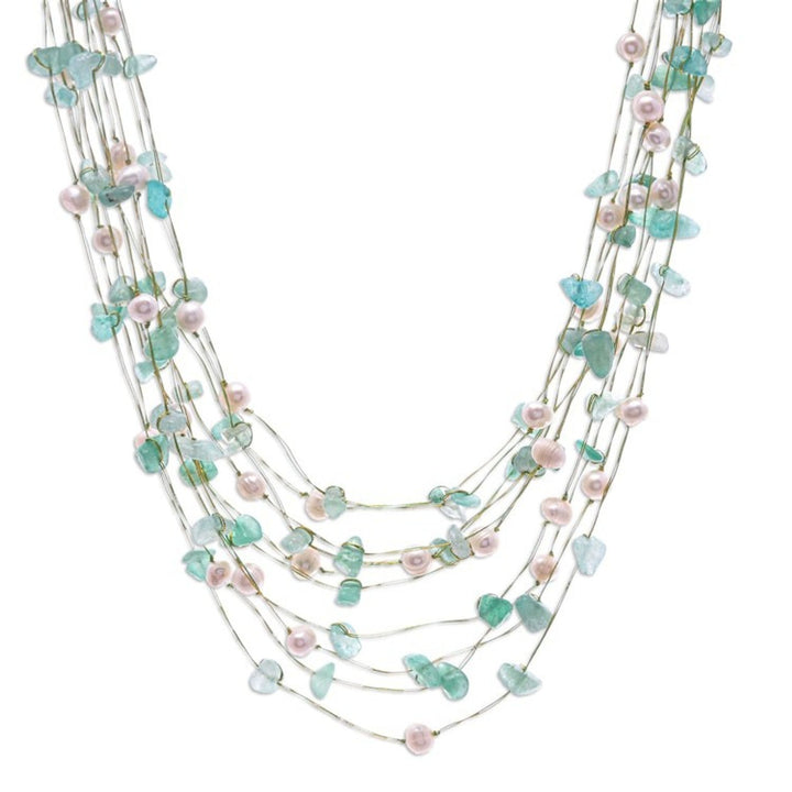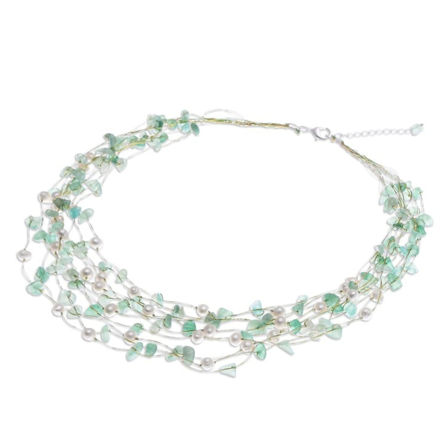 Handmade Aventurine and Cultured Pearl Waterfall Necklace 'Cascade in Mint'