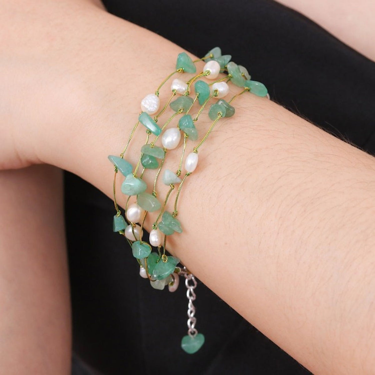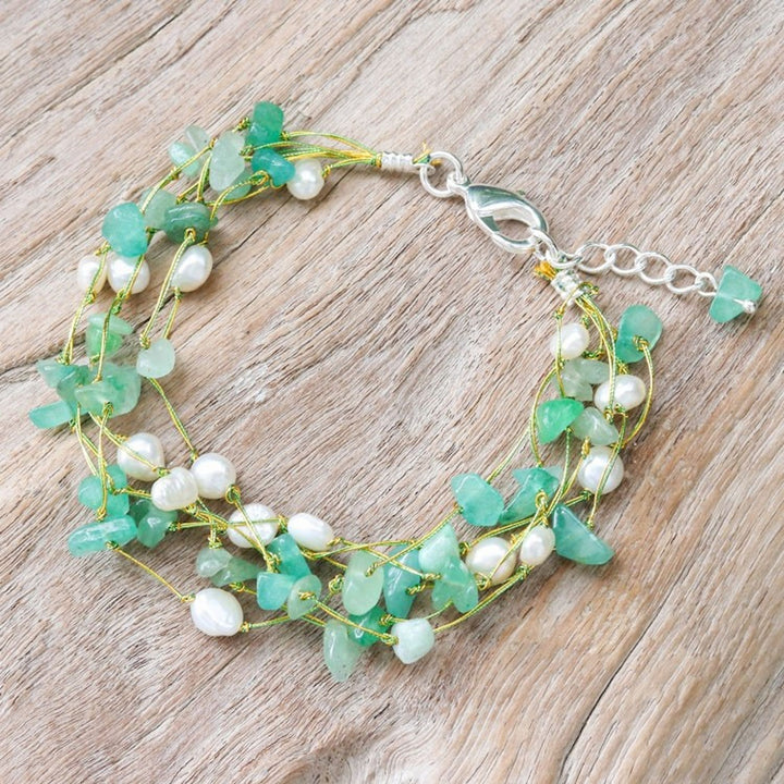 Handmade Aventurine and White Pearl Beaded Strand Bracelet 'Cascade in Mint'