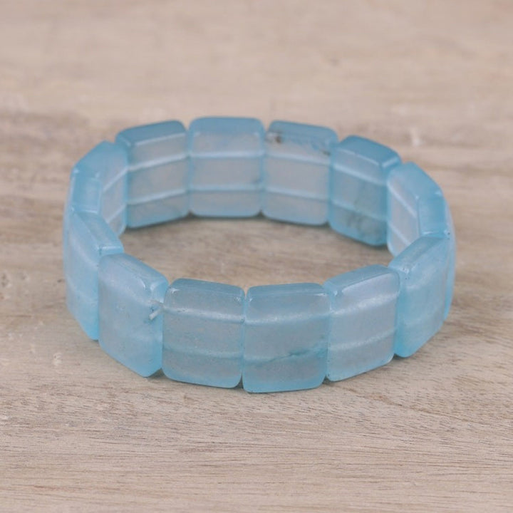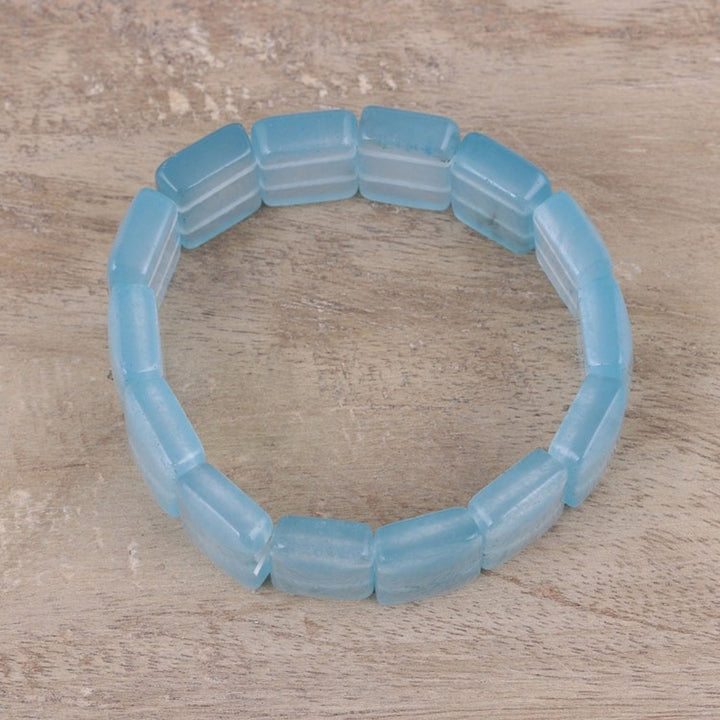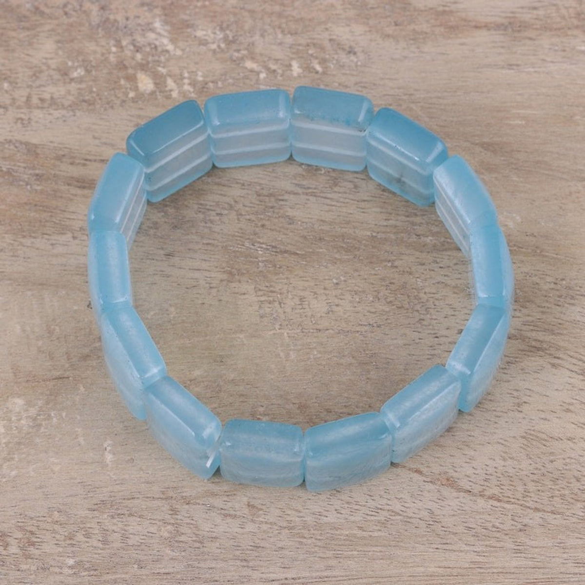 This Handmade Aventurine Blue Cosmic Allure Beaded Bracelet 'Cosmic Allure' is a stylish and intriguing accessory. Designed by Narayani, the beaded bracelet features frosty blue aventurine beads that form a band of intriguing allure. The piece, which reflects both heritage and discovery, is a beautiful representation of the artisan's elegance and artistry.