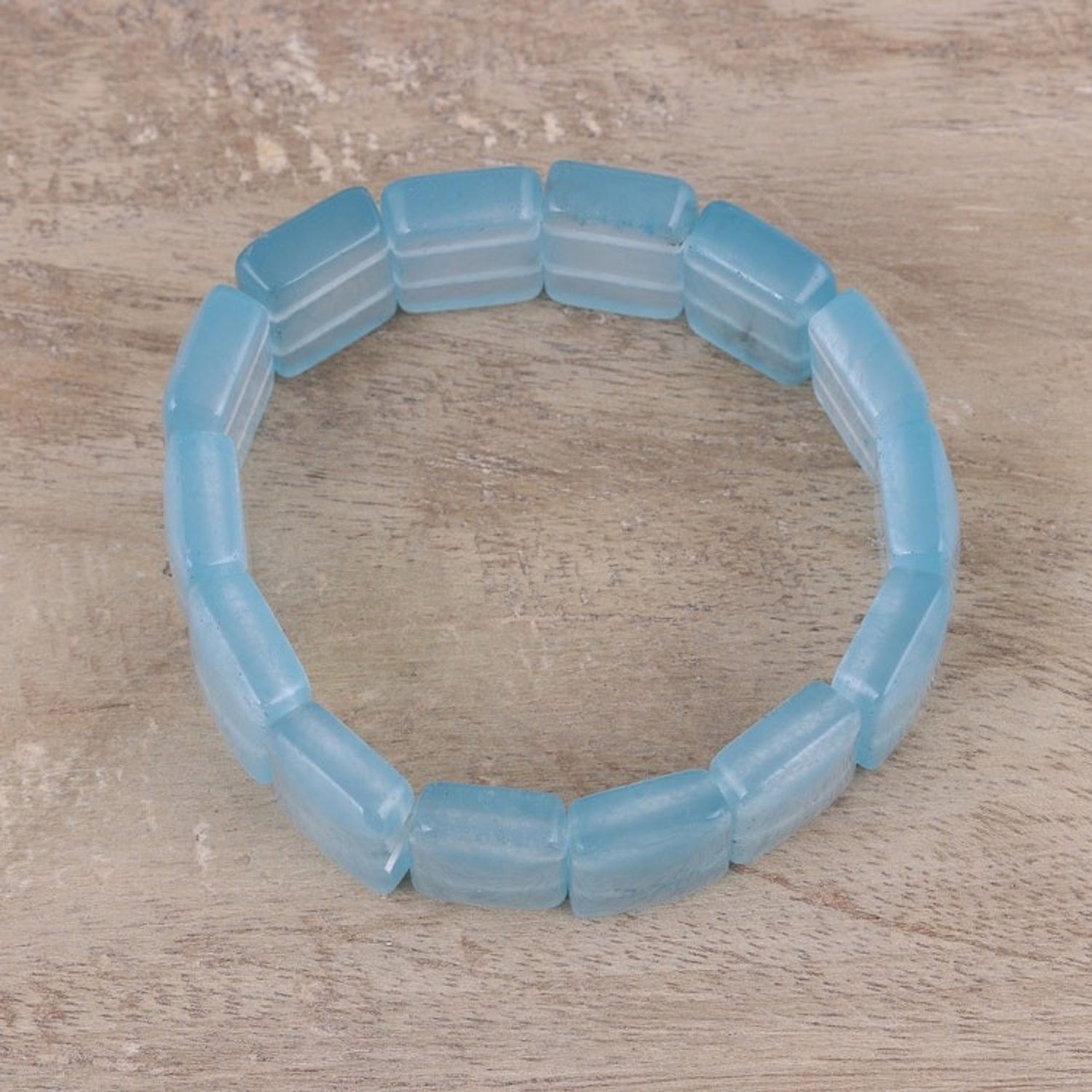Handcrafted in India with dyed aventurine, this bracelet is stretchy and measures 7 inches in inner circumference and 0.8 inches in width. Colors may vary slightly.