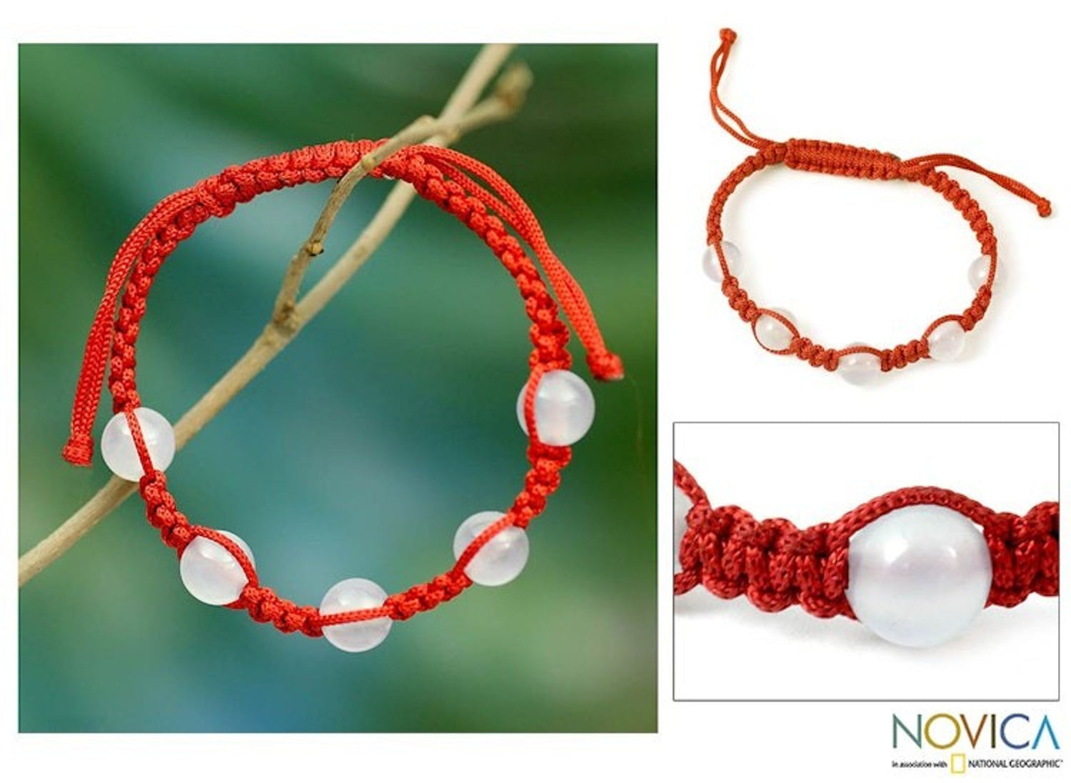 Handcrafted in India with chalcedony and nylon cords. It is adjustable from 5.5 to 7.8 inches in length.